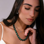 Ousado e vibrante, o Colar Chianti é uma verdadeira celebração da beleza natural. Com contas verdes de malaquita natural e espaçadores prateados cintilantes, essa peça captura a essência da elegância orgânica e eleva qualquer visual — seja no dia a dia ou em produções marcantes.