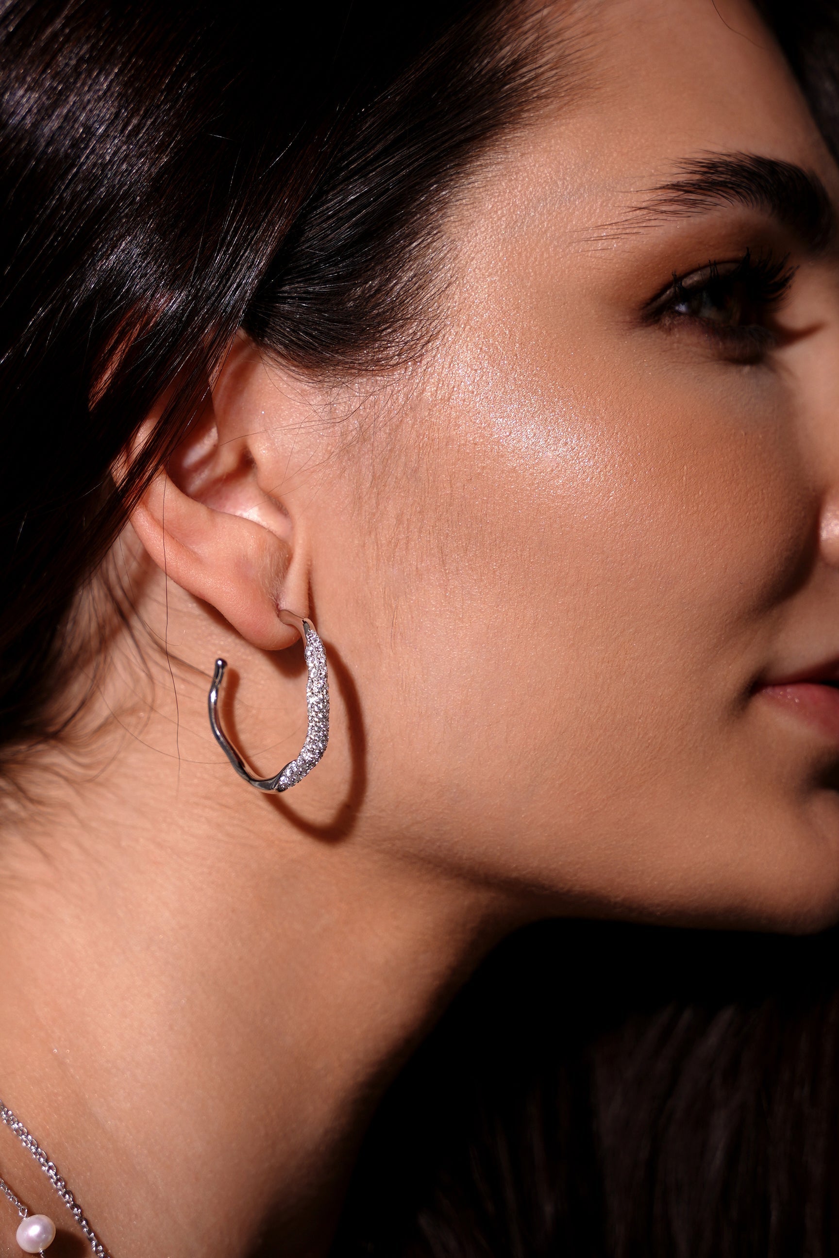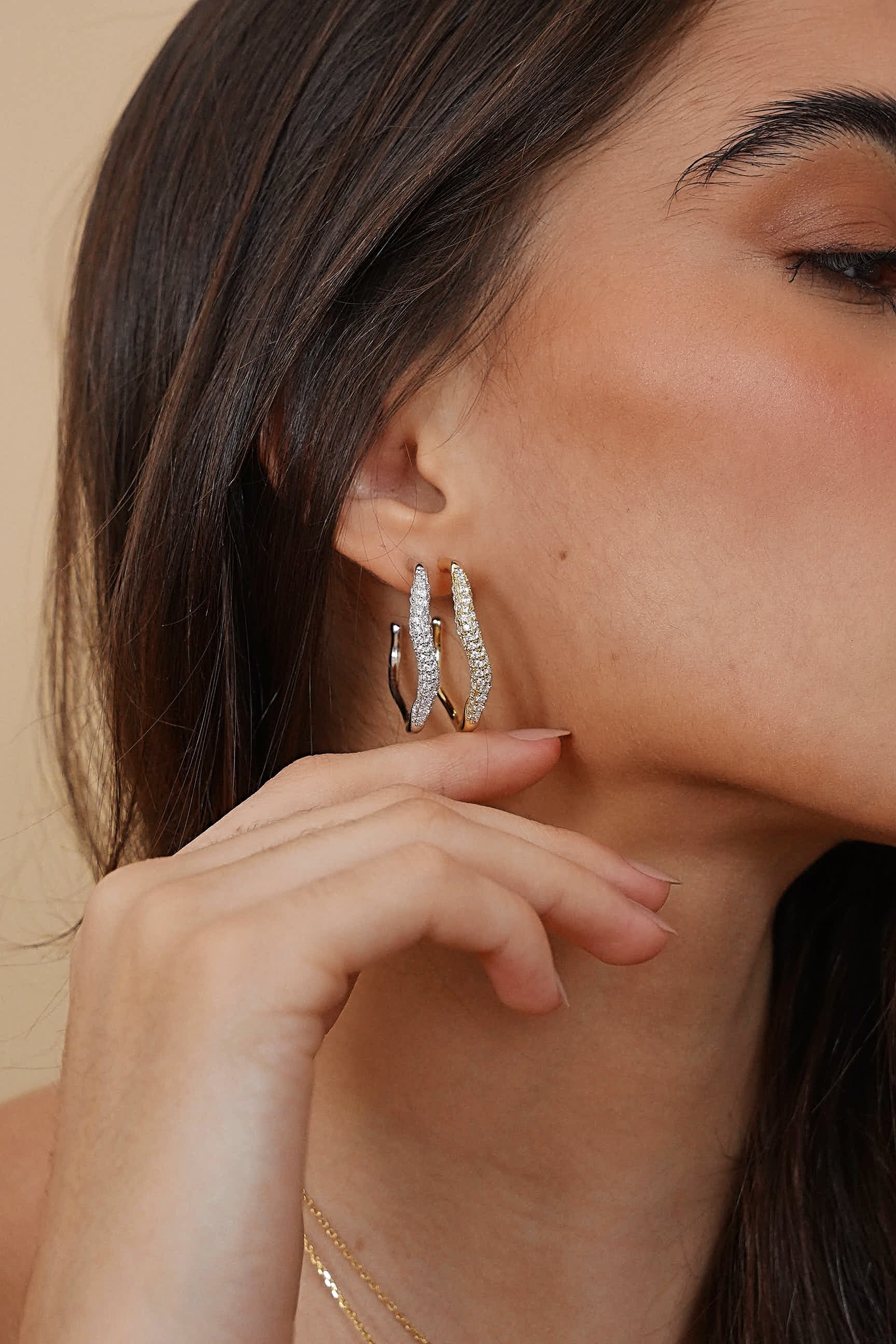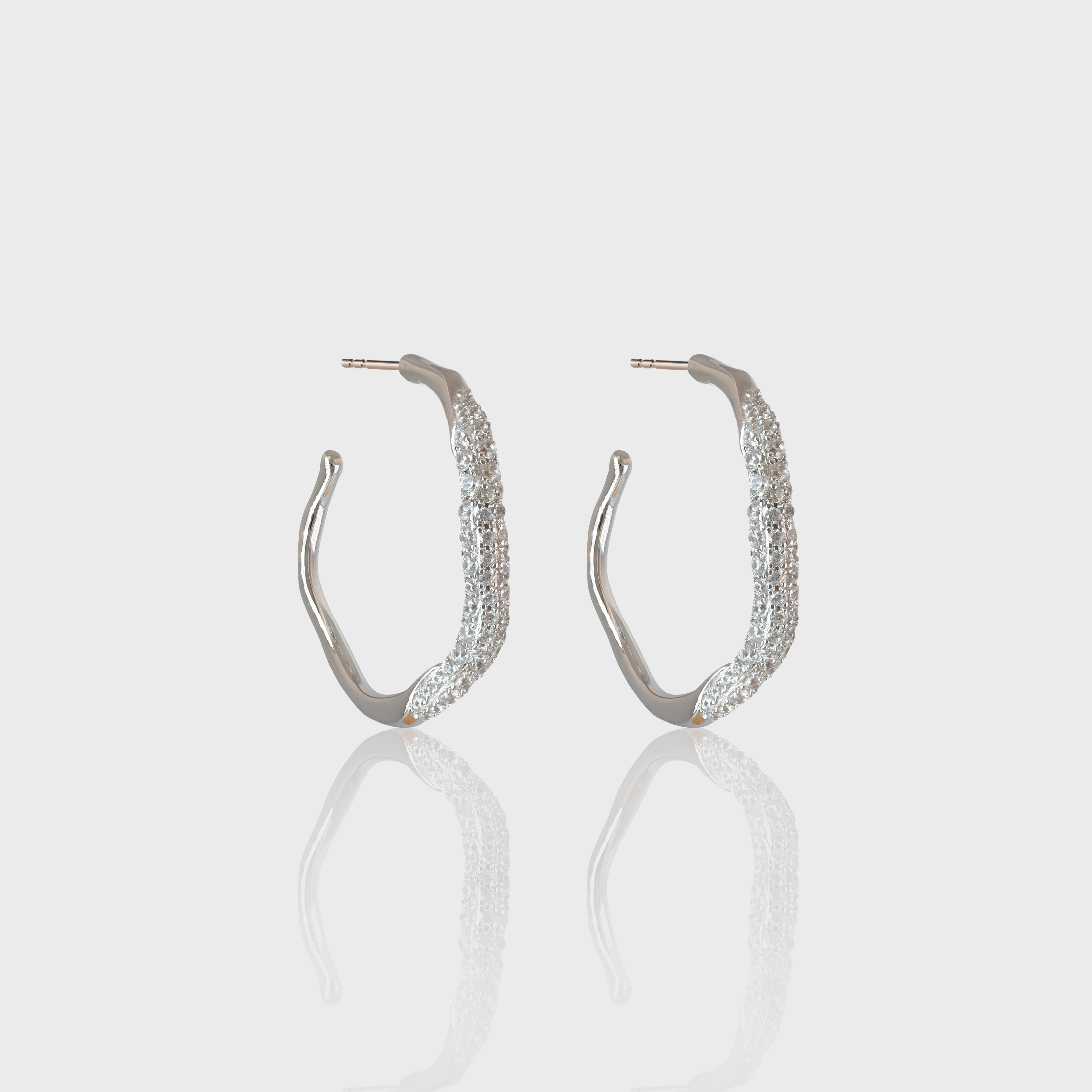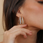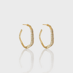 Os Brincos Donatella apresentam um formato orgânico elegante com uma linha de pedras brilhantes ao longo de um dos lados. Banhados a ouro e ródio, esses brincos de 31mm são leves e projetados para conforto, tornando-os um acessório perfeito para adicionar um toque de charme sofisticado a qualquer visual.