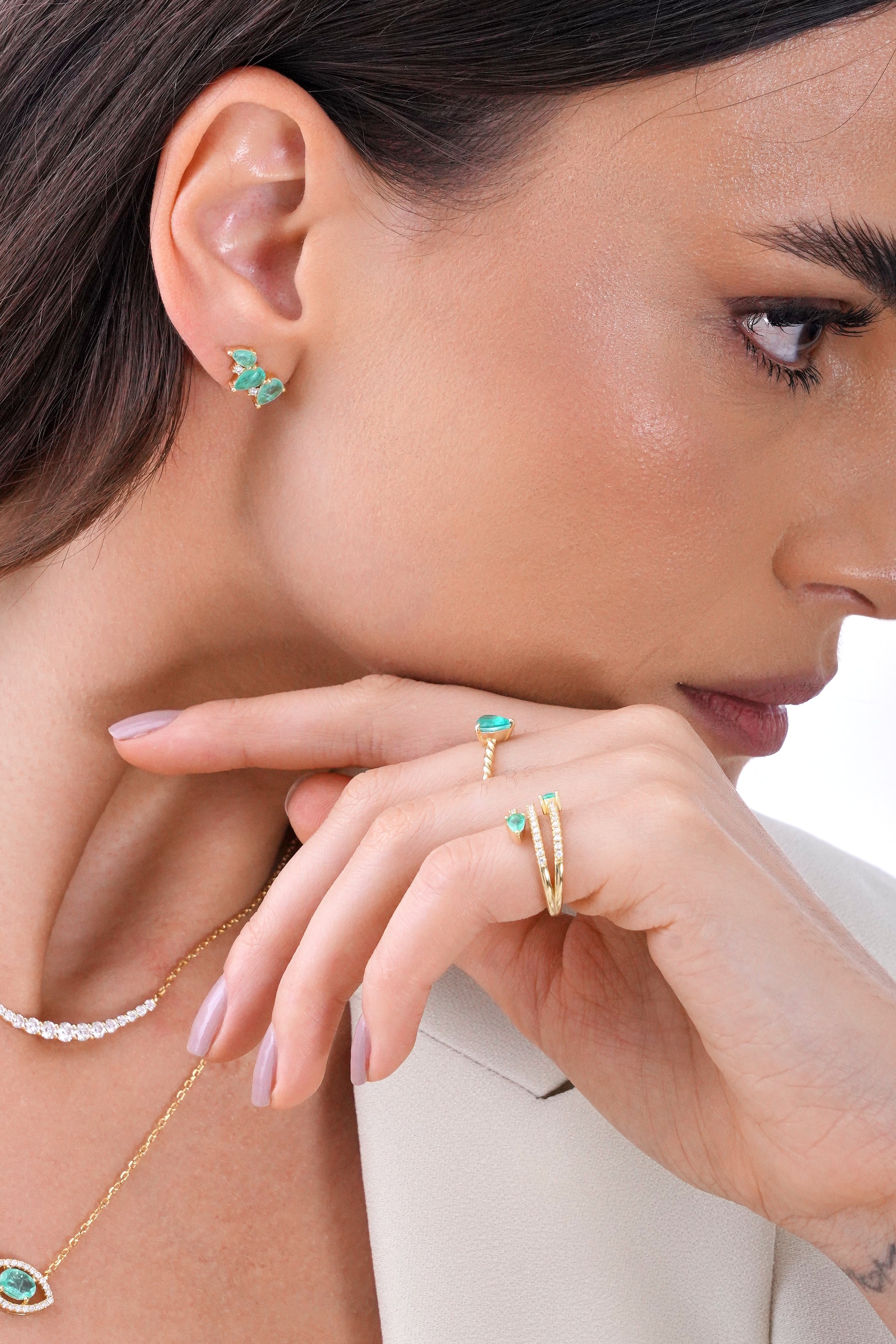 Modernos e luminosos, os Brincos Glow Up foram desenhados para seguir a curvatura natural da orelha, criando uma declaração de estilo sofisticada e sem esforço. Com pedras fusion em tons vibrantes de verde e moissanites cintilantes, esta peça traz um toque de glamour diário com uma abordagem inovadora.