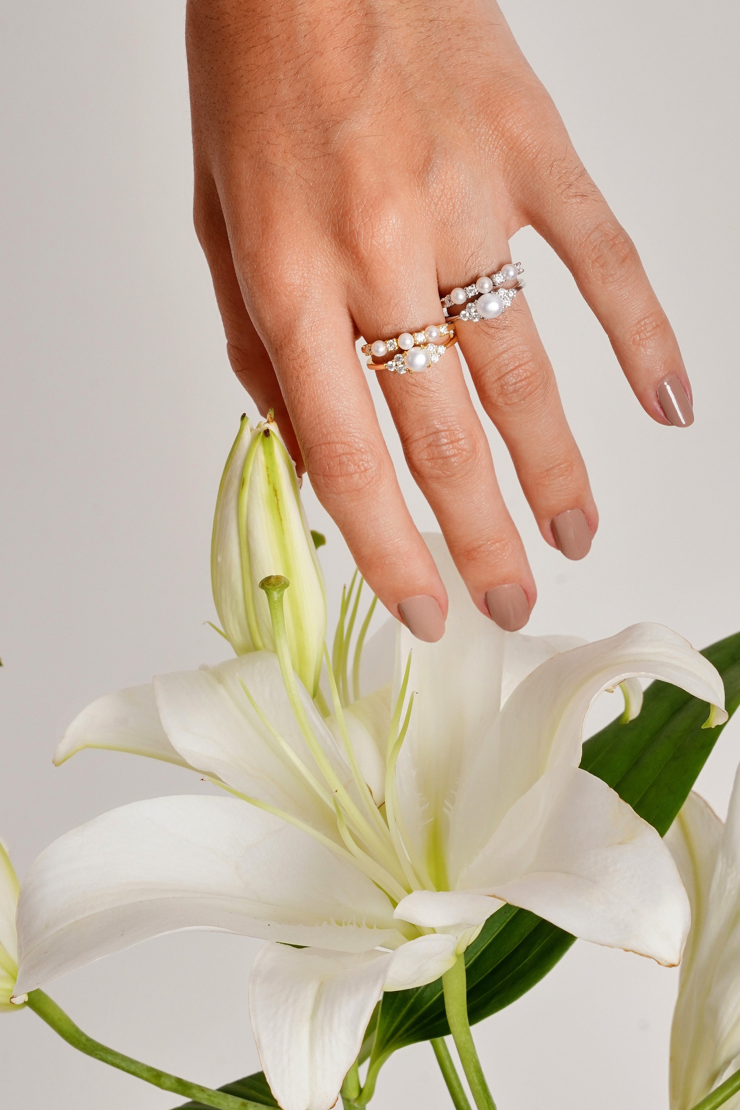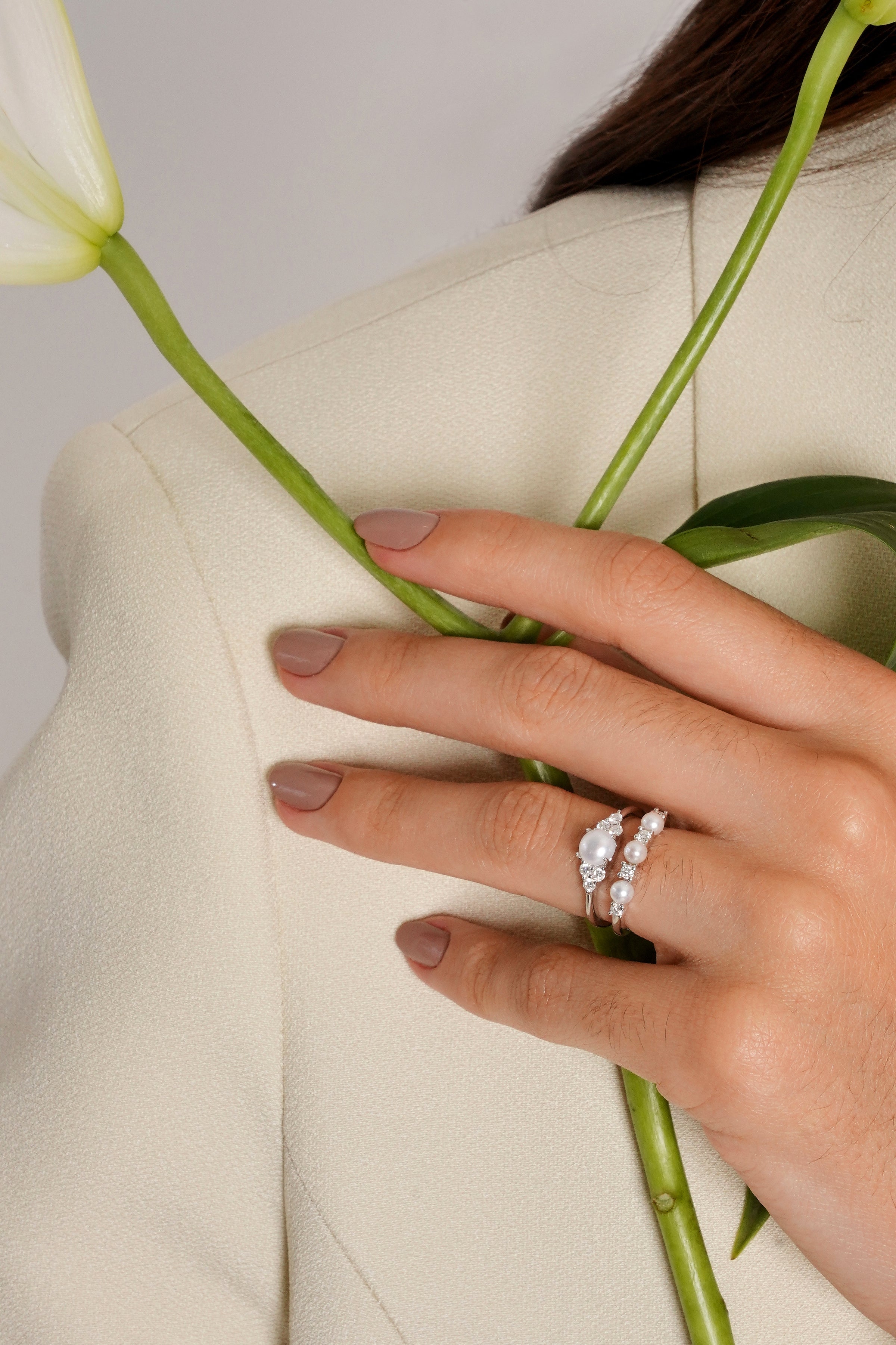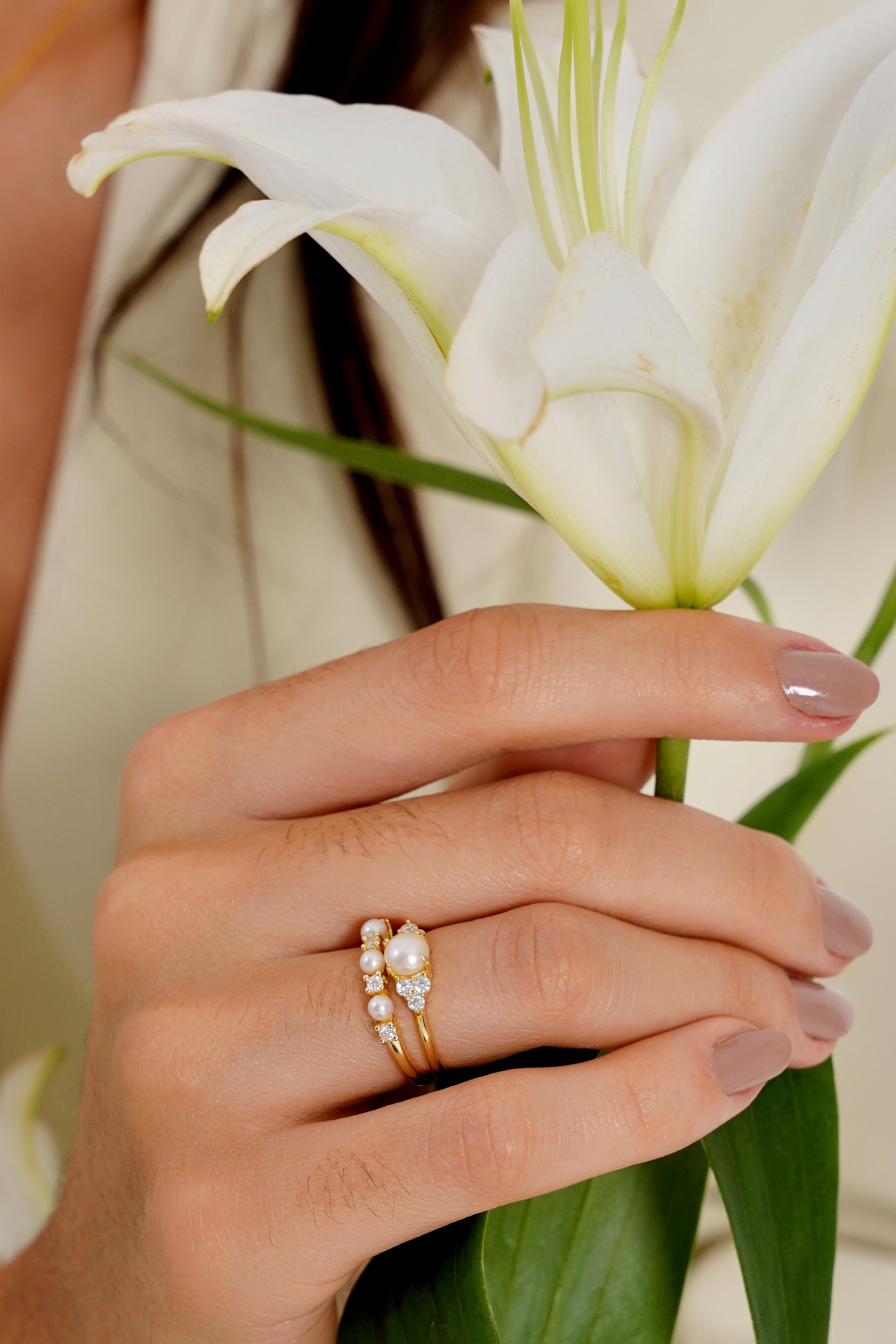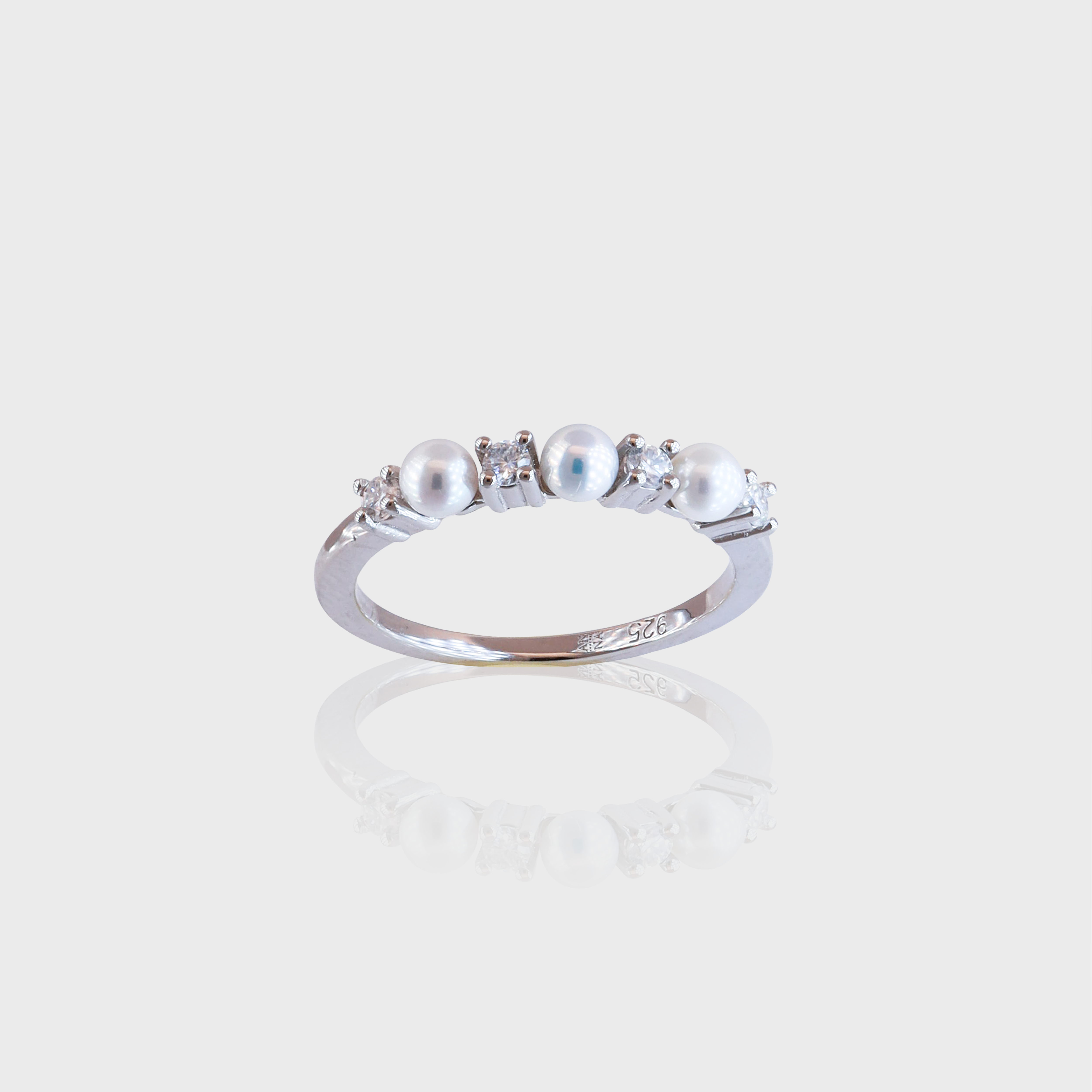 - The Dainty Pearls Moissanite Ring -