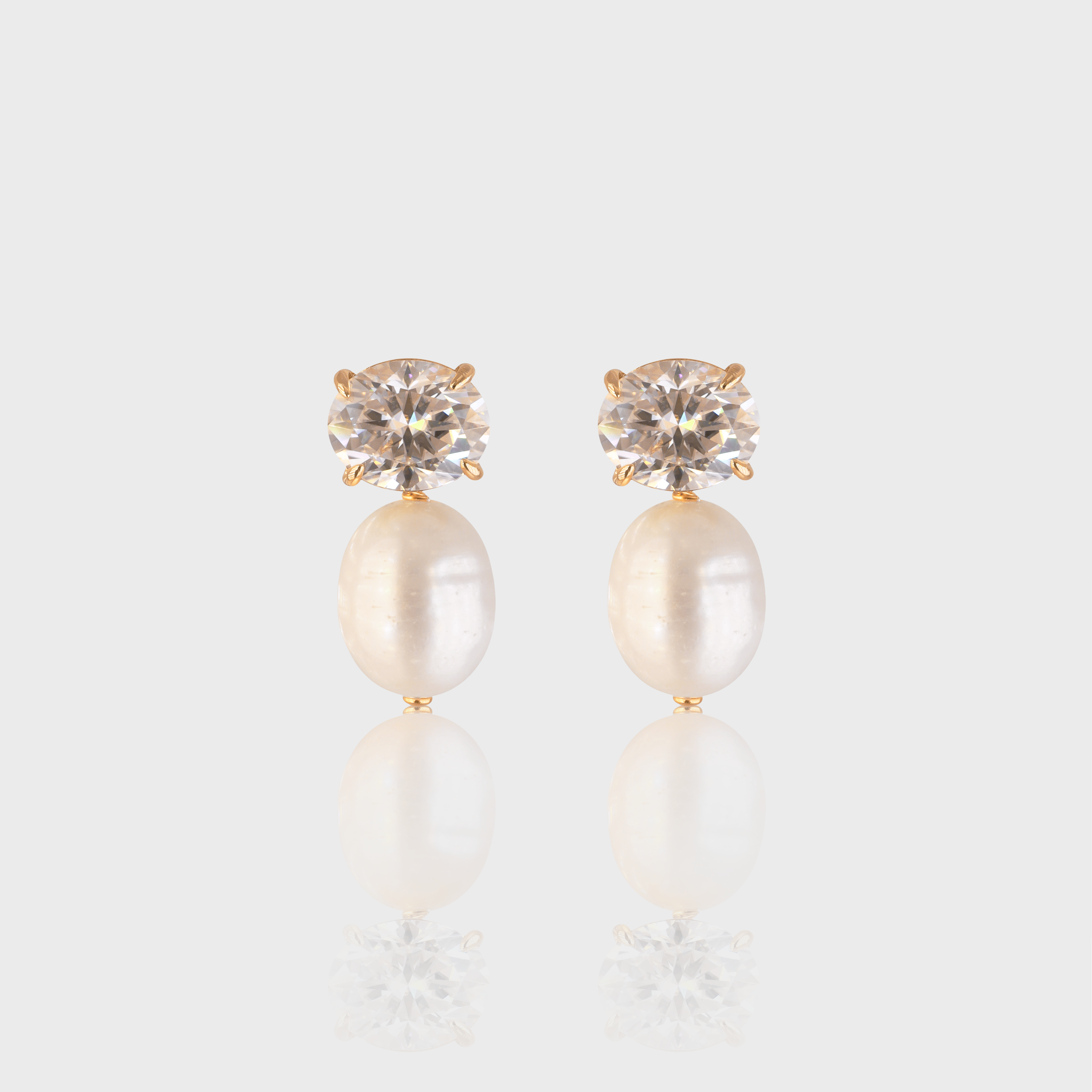 Tamanho da Pedra: Moissanita 8 x 10mm, Pérola 13 x 11mm.