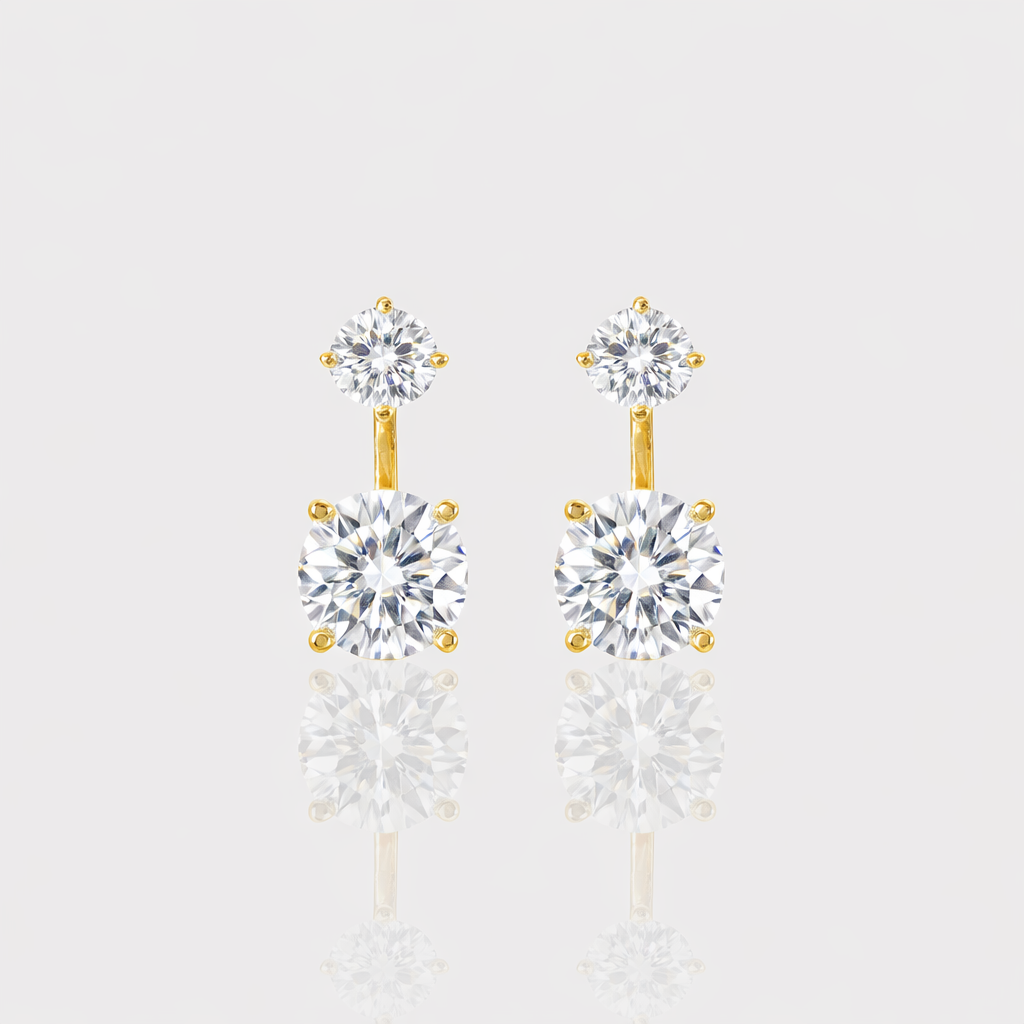 - Tamanho: Pedras Moissanite de 6mm e de 9mm. Dimensões totais elegantes de 9 mm x 23 mm para uma aparência marcante e graciosa
