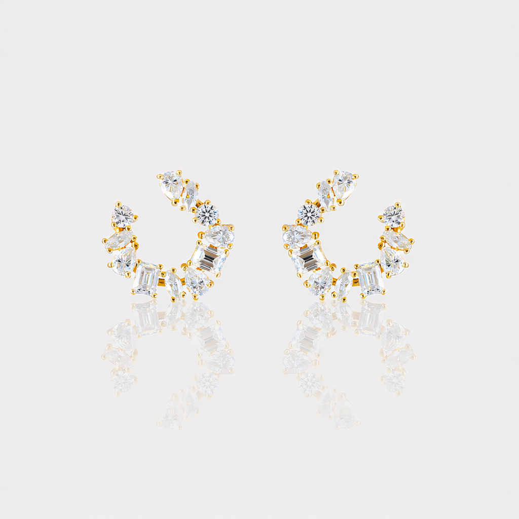 Um arco escultural de brilho — os Brincos Supreme Moissanite apresentam uma elegante silhueta em formato de crescente, adornada com uma curadoria de moissanites em diferentes lapidações para máximo brilho. Produzidos em Prata 925 e finalizados com banho de ouro 14K ou ródio, esses brincos entregam um brilho multidimensional e uma elegância refinada, perfeitos para elevar tanto produções do dia a dia quanto looks noturnos.