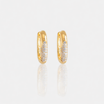 Design: Argolas slim e polidas com detalhe pavé levemente afunilado, que alonga visualmente a orelha e adiciona um toque sofisticado ao look