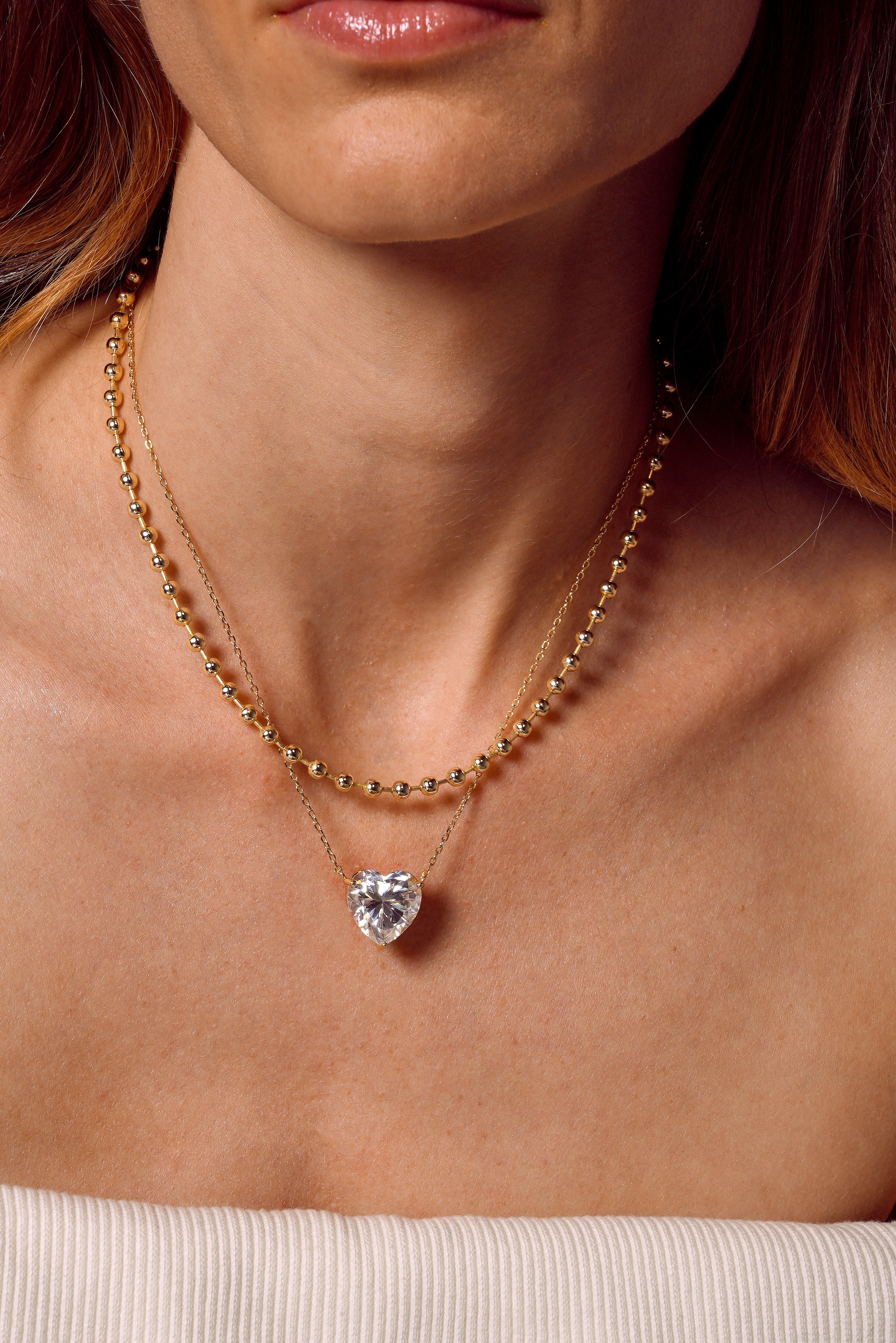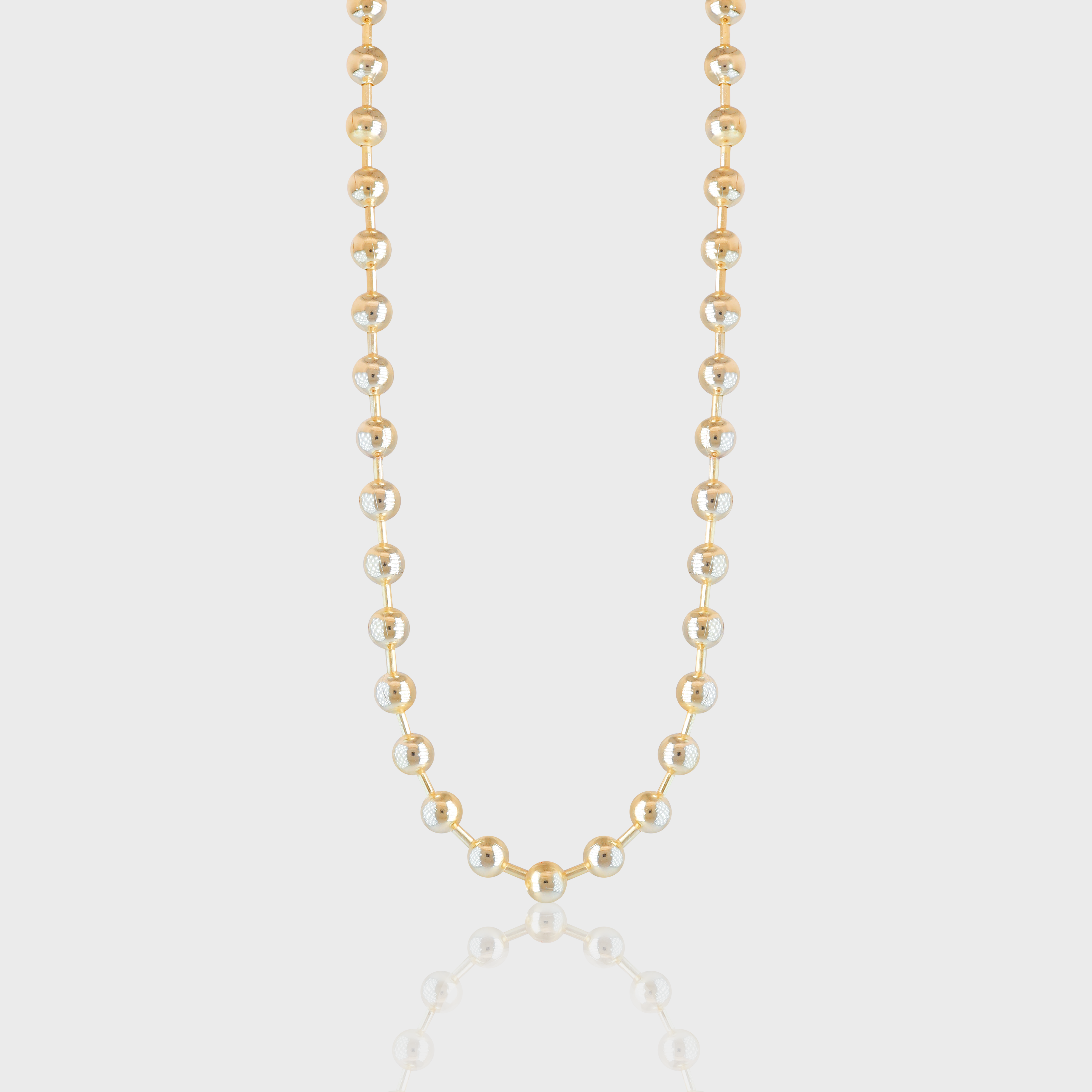 Um clássico moderno que eleva qualquer produção. O Colar Caldonazzo apresenta uma sequência de esferas polidas com um sutil contraste de textura, criando um visual luminoso e sofisticado — perfeito para transitar do dia para a noite com elegância natural.