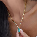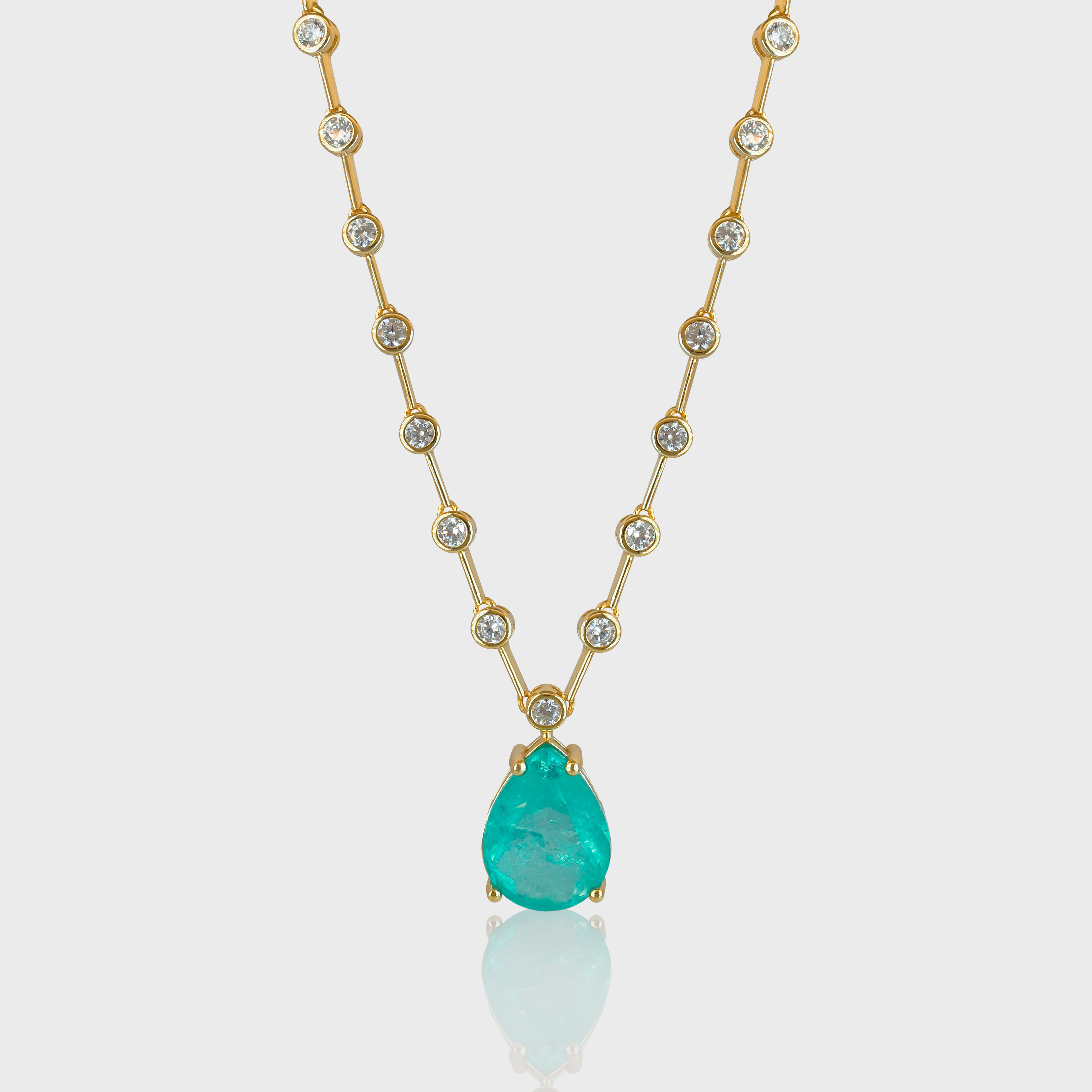 Apresentamos o requintado Colar Saint Tropez, fabricado em Prata 925 e banhado em Ouro para um toque de elegância e luxo. Adornado com uma zircônia fusion em tom de esmeralda colombiana em corte pera de 16mm, este colar de 42cm é livre de níquel e hipoalergênico, garantindo conforto e estilo superiores.