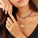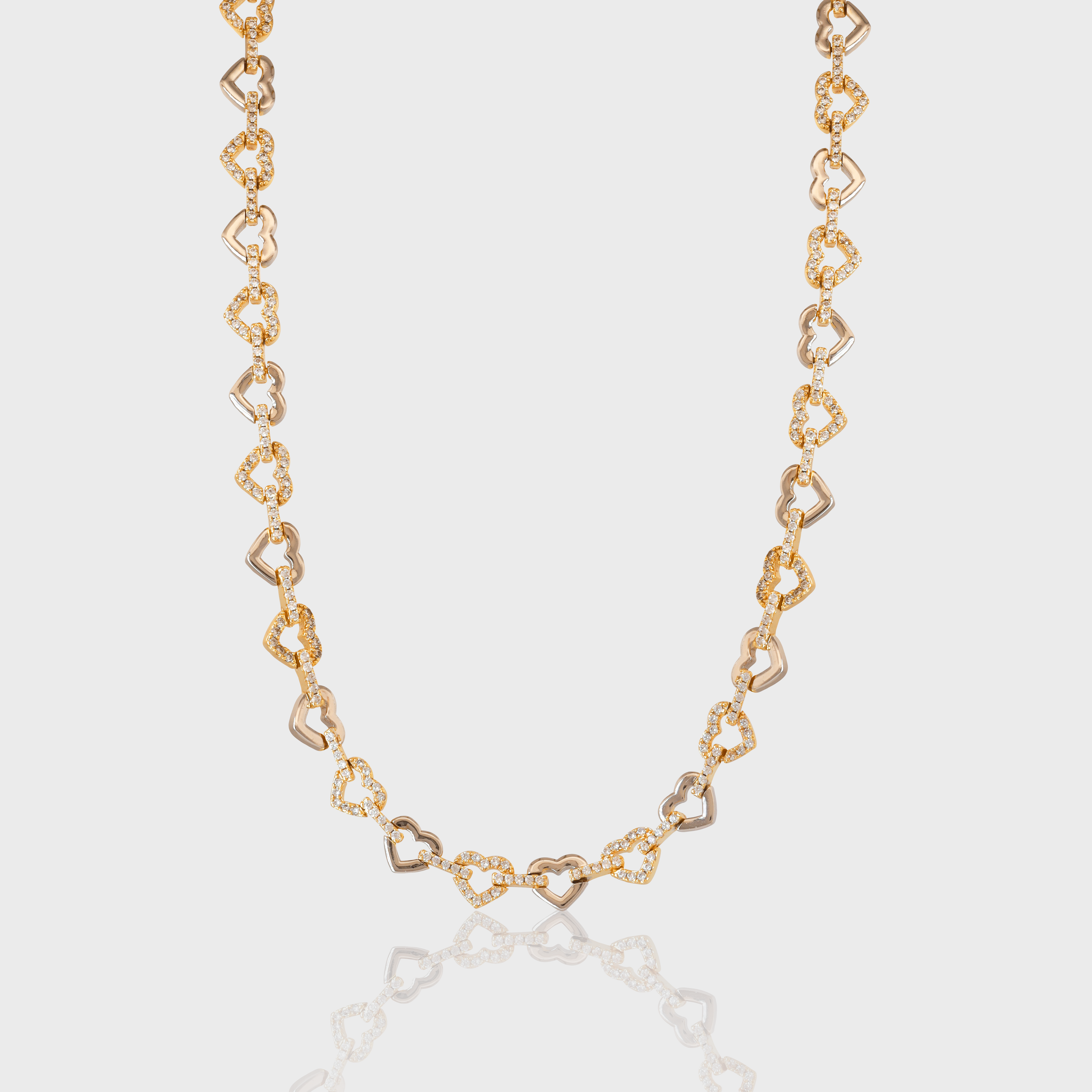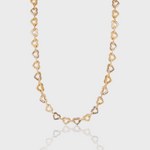 O colar choker Taos é uma peça delicada, mas impactante, perfeita para sobreposições e para adicionar um toque de elegância a qualquer look. Esta choker combina de forma única tons de ouro e prata com uma mistura de formas de coração lisas e texturizadas, resultando em um design rico e intricado. Com seus detalhes únicos, a Choker Taos se destaca como uma peça verdadeiramente singular. Medindo 28cm com um extensor de 10cm, oferece versatilidade para um ajuste perfeito e para ser combinada com outras colares.