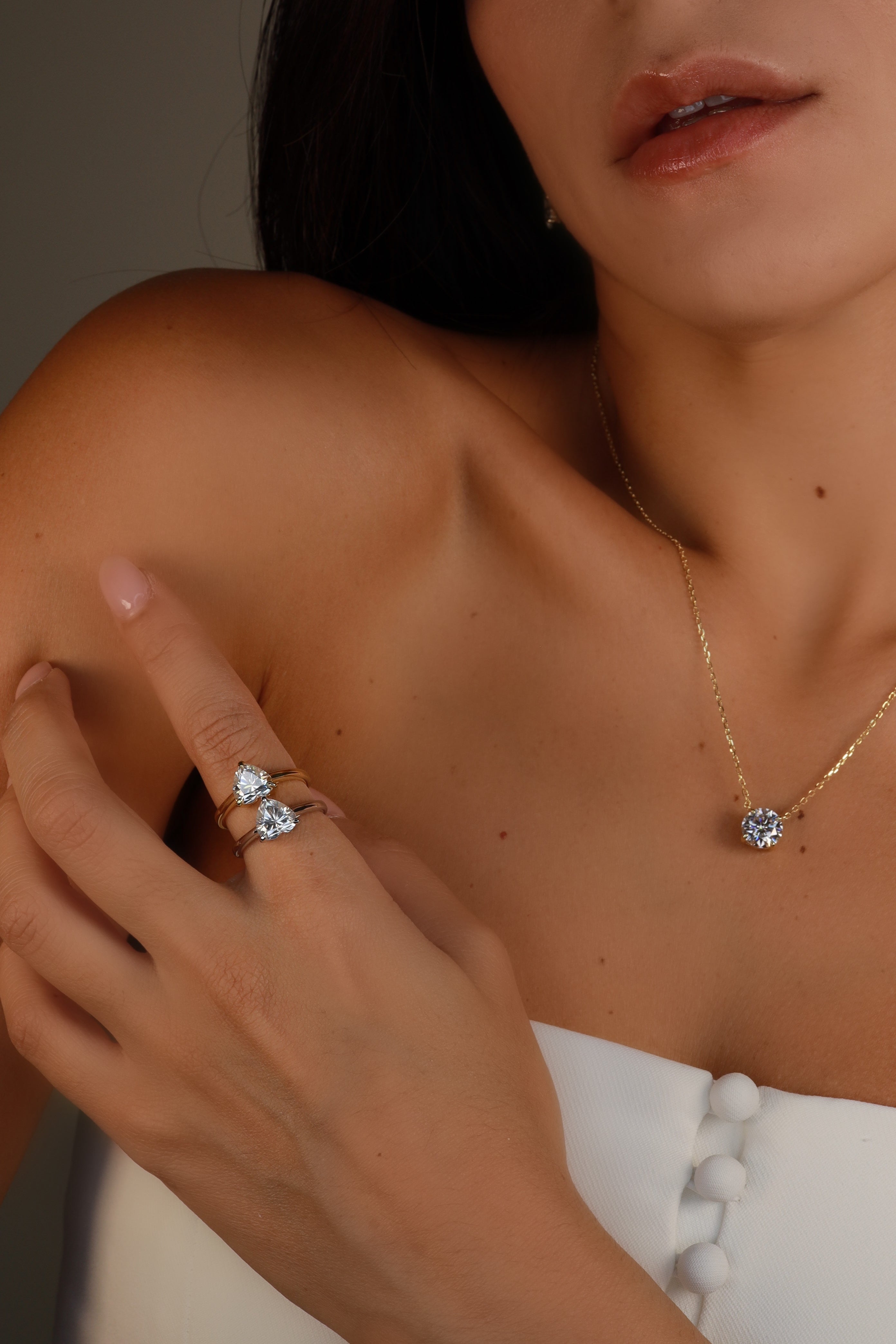 PORQUÊ MOISSANITE? Da beleza à durabilidade, o moissanite se compara facilmente aos diamantes, se não os supera. É também uma pedra preciosa verdadeiramente sustentável. Você não precisa se preocupar com a responsabilidade social da extração ou com os terríveis impactos ambientais da mineração. Apesar de todas essas qualidades, o moissanite ainda é significativamente mais barato do que os diamantes, agregando um alto valor às nossas joias por uma fração do custo.