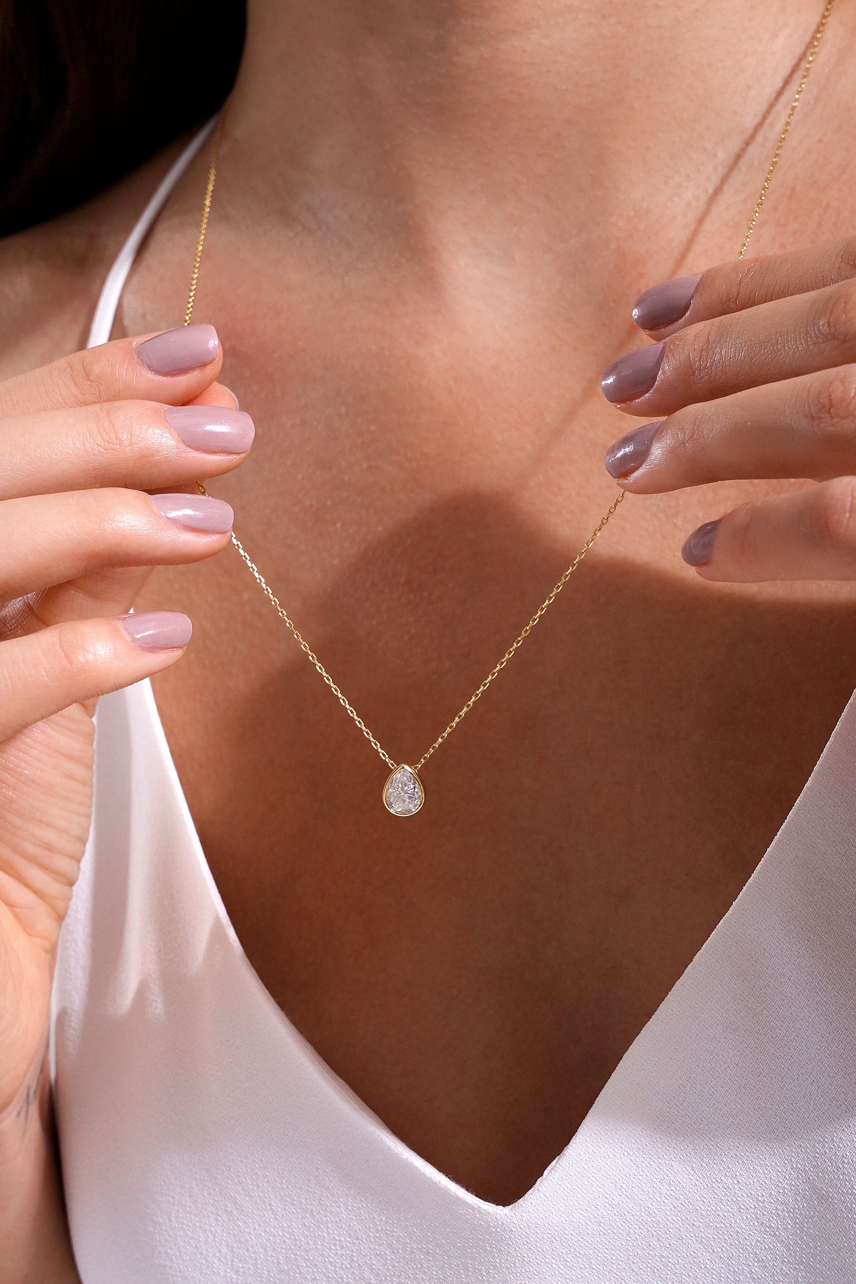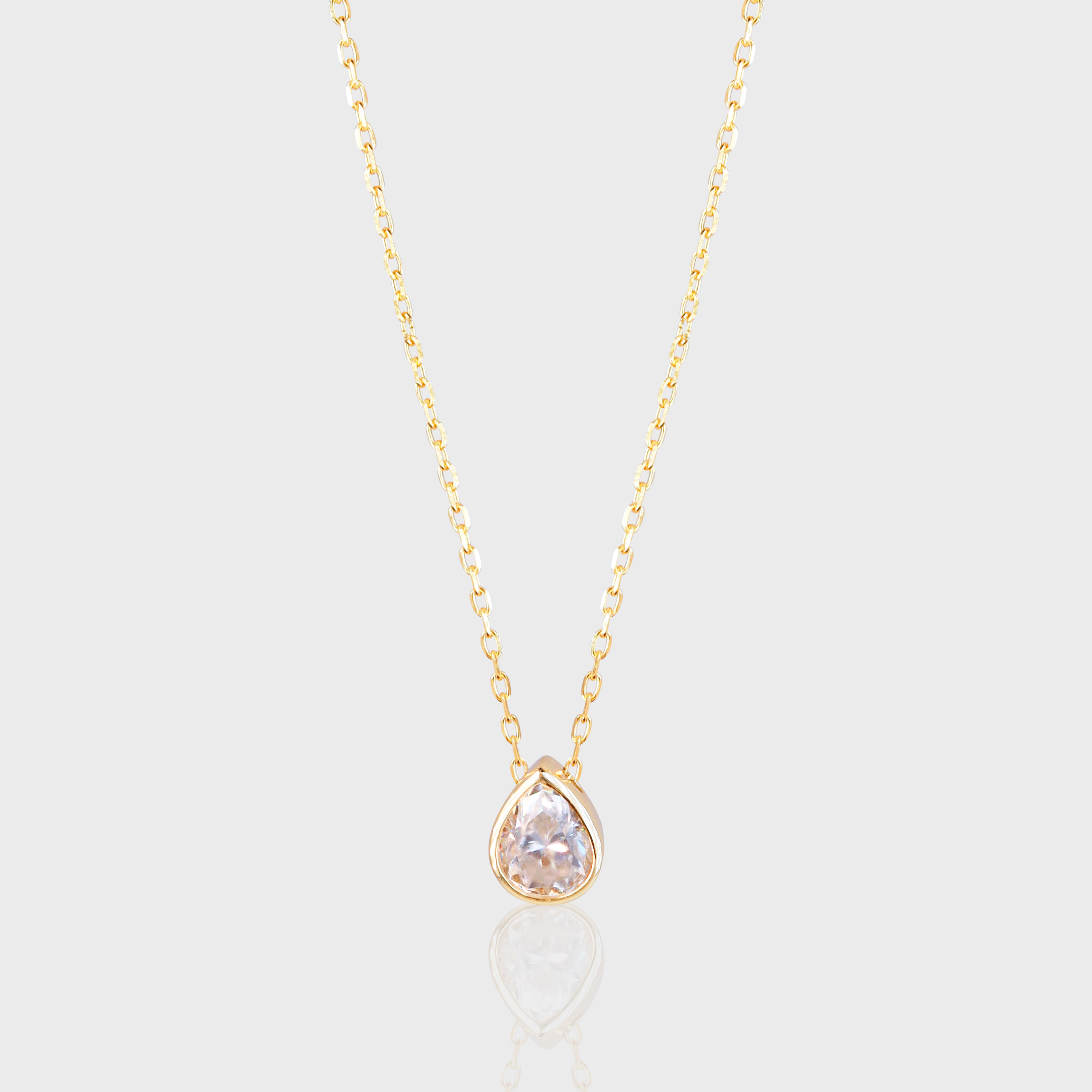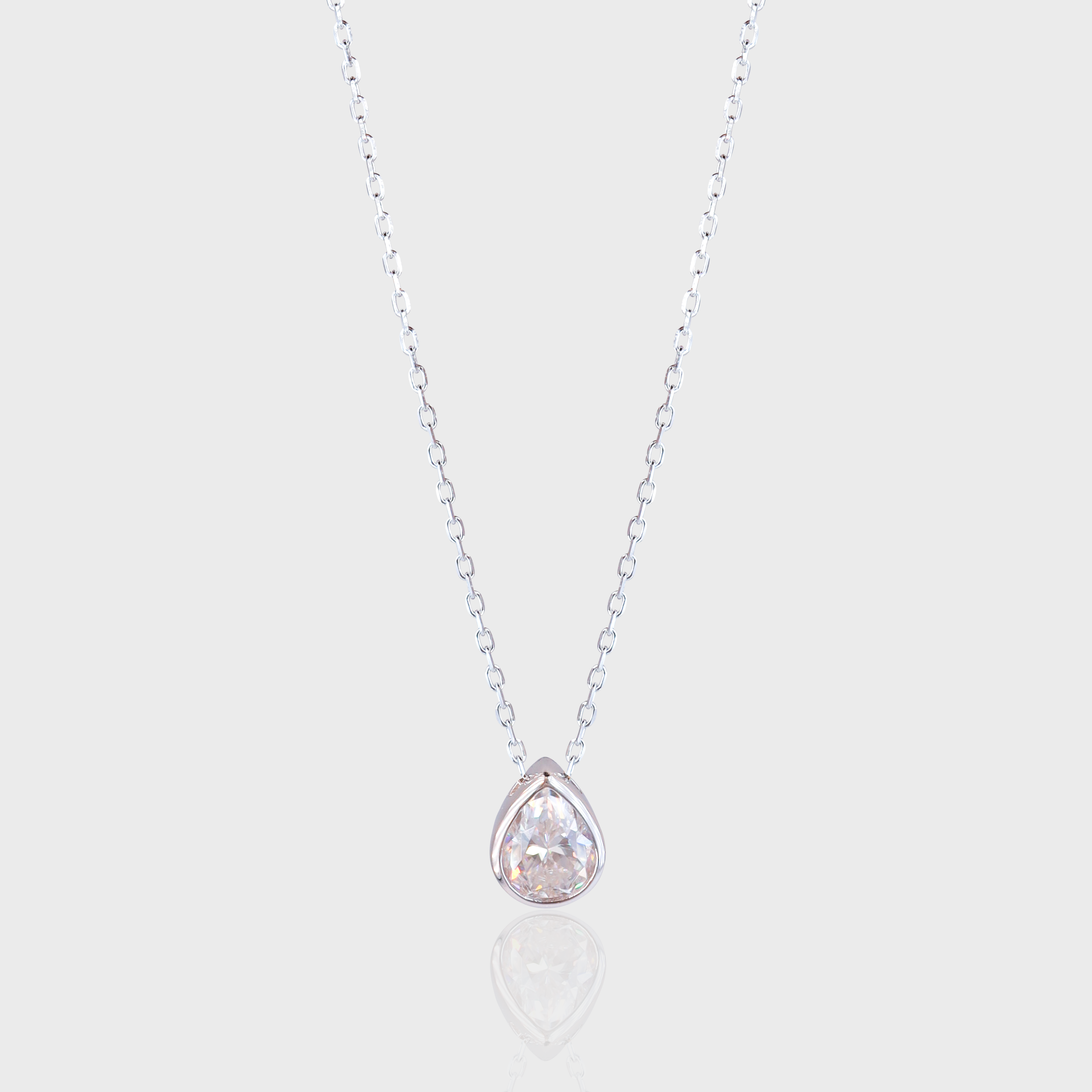 Tamanho da pedra: Moissanite em forma de gota, com dimensões de 7mm x 9mm.