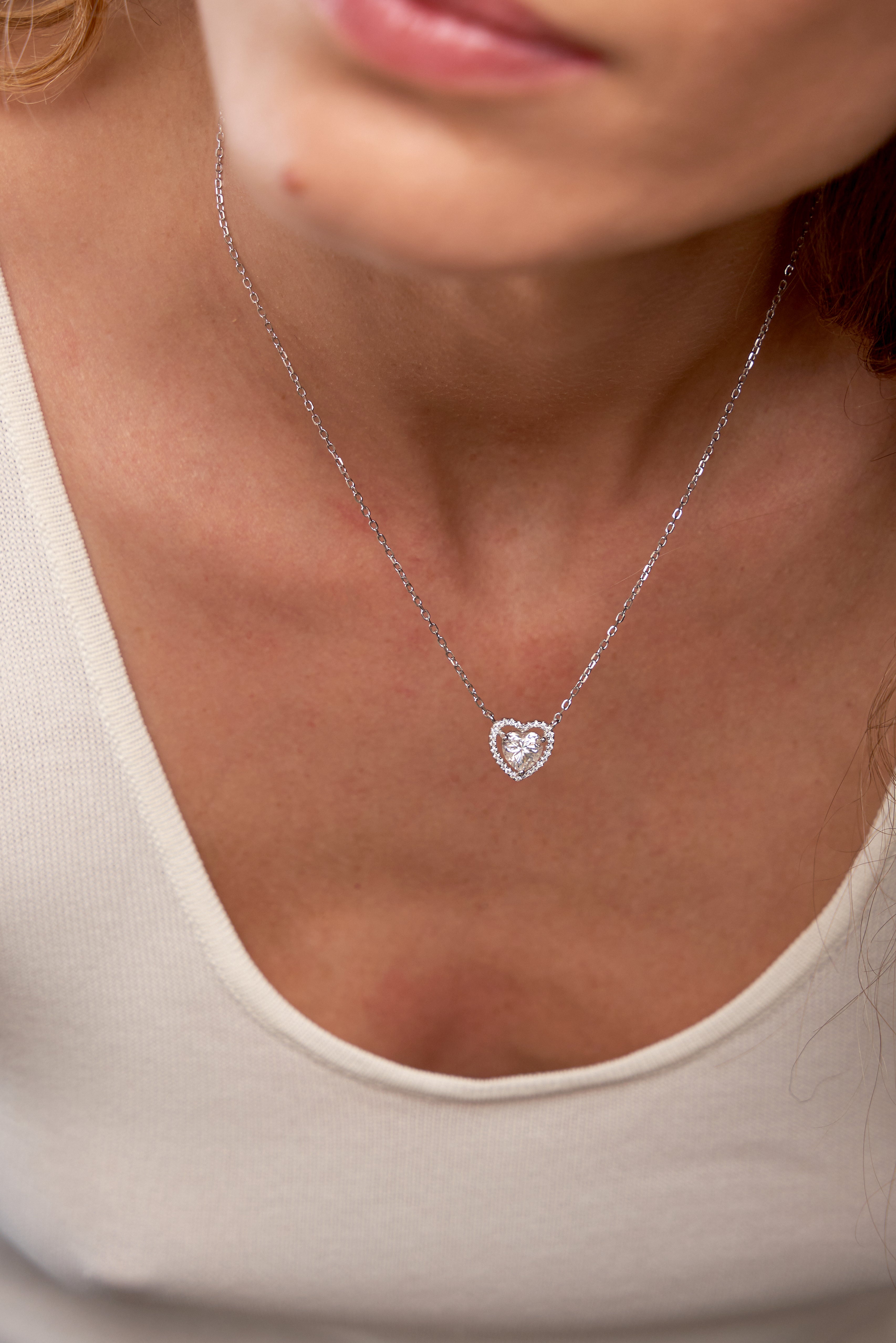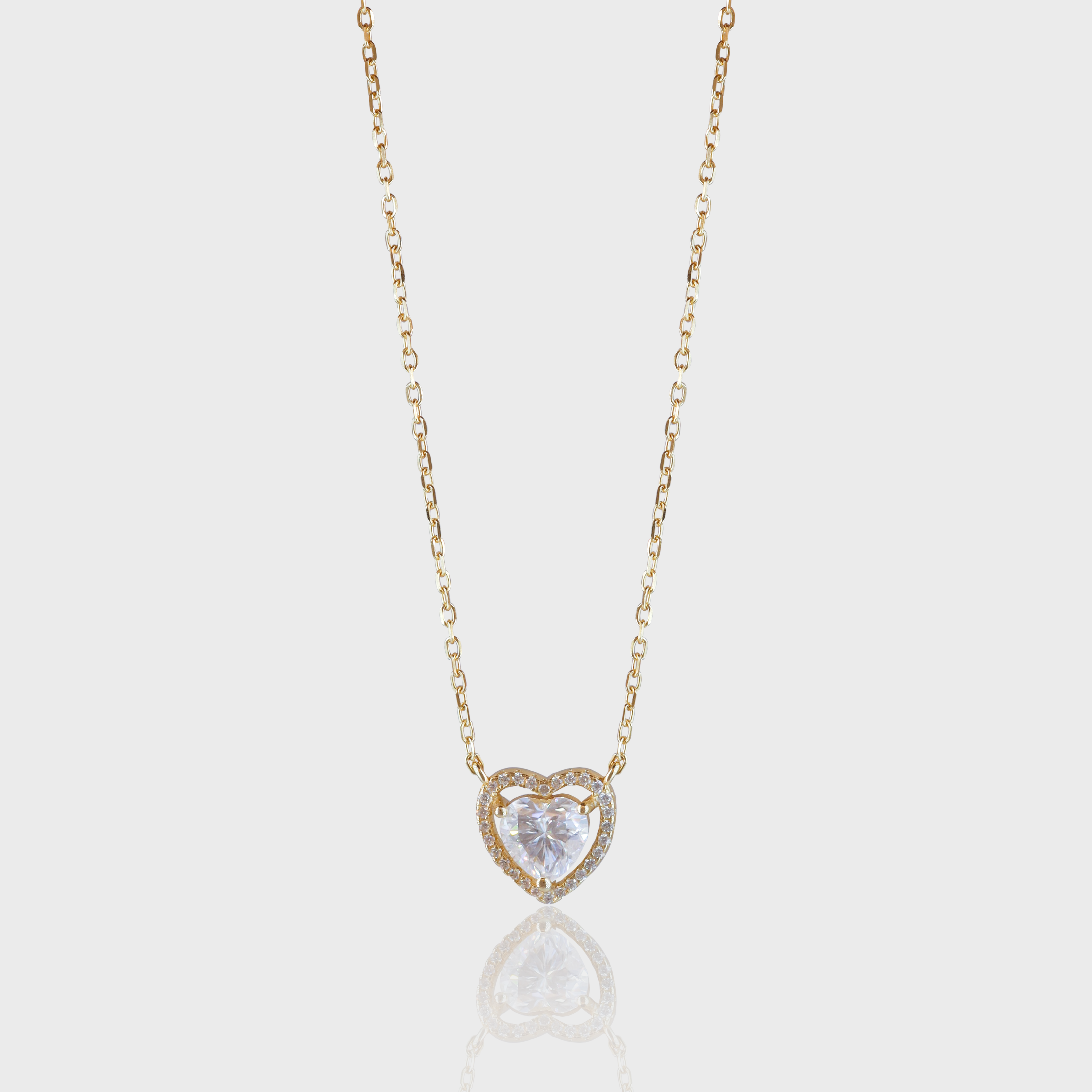 Um símbolo de elegância eterna — o Colar Forever Moissanite captura a essência do romantismo atemporal. Produzido em Prata 925 e banhado em ouro ou ródio, apresenta uma pedra central de moissanite em corte coração de 11mm, cercada por um delicado halo de micro moissanites que refletem a luz com suavidade a cada movimento. Uma peça que traduz beleza refinada e feita para durar para sempre.