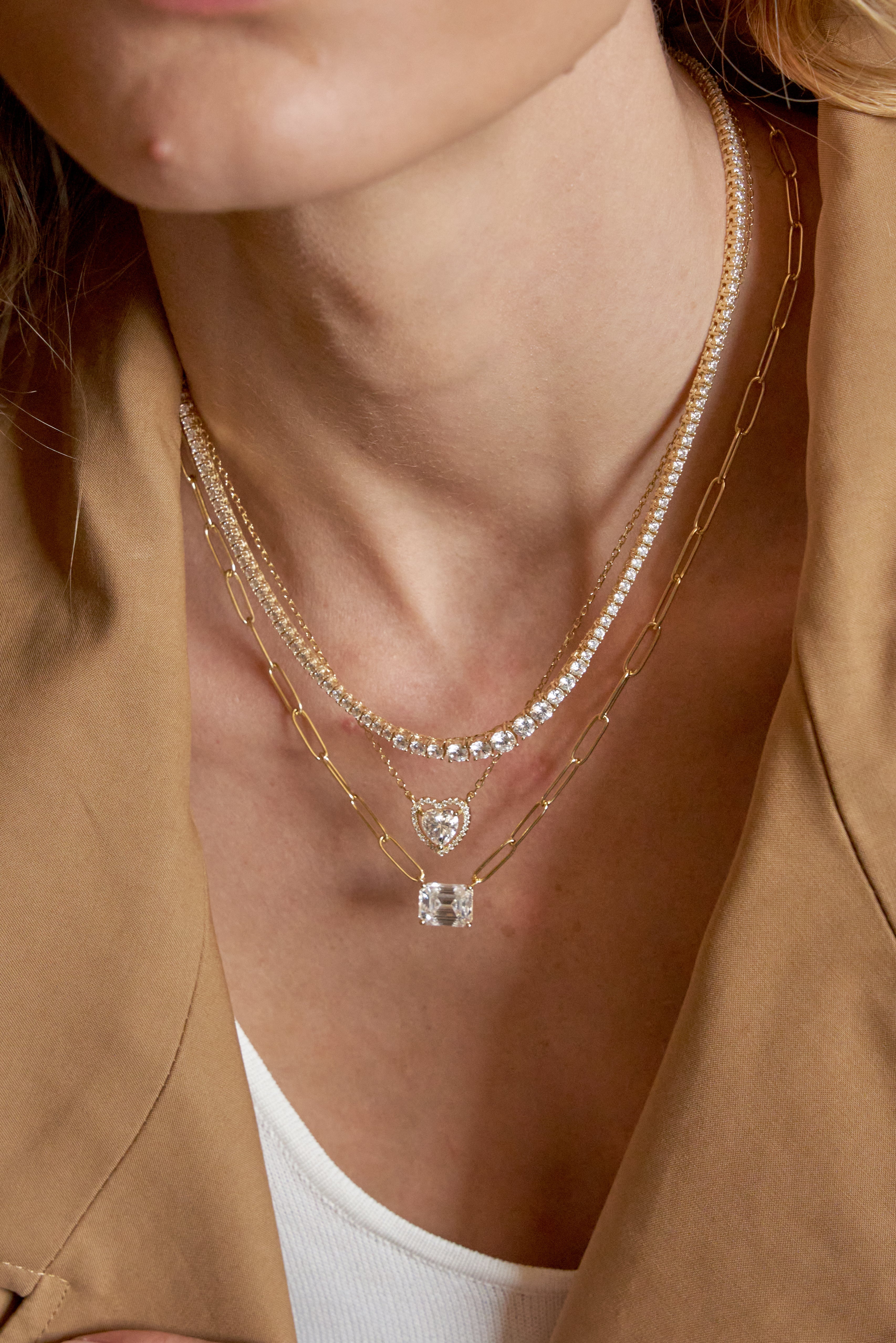 Abrace a sofisticação eterna com o Colar Forever Moissanite — uma expressão luminosa de romance moderno e artesanato duradouro.