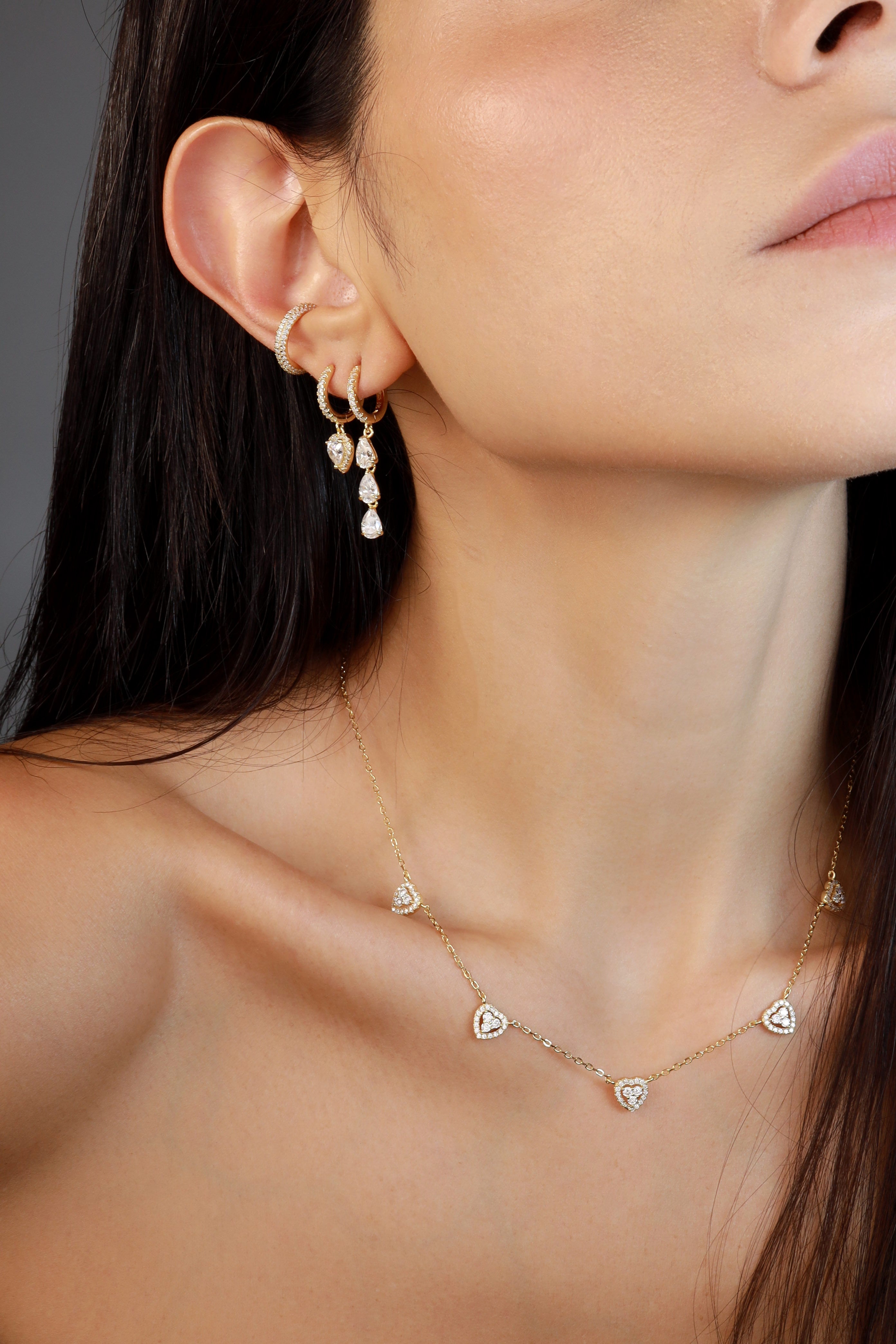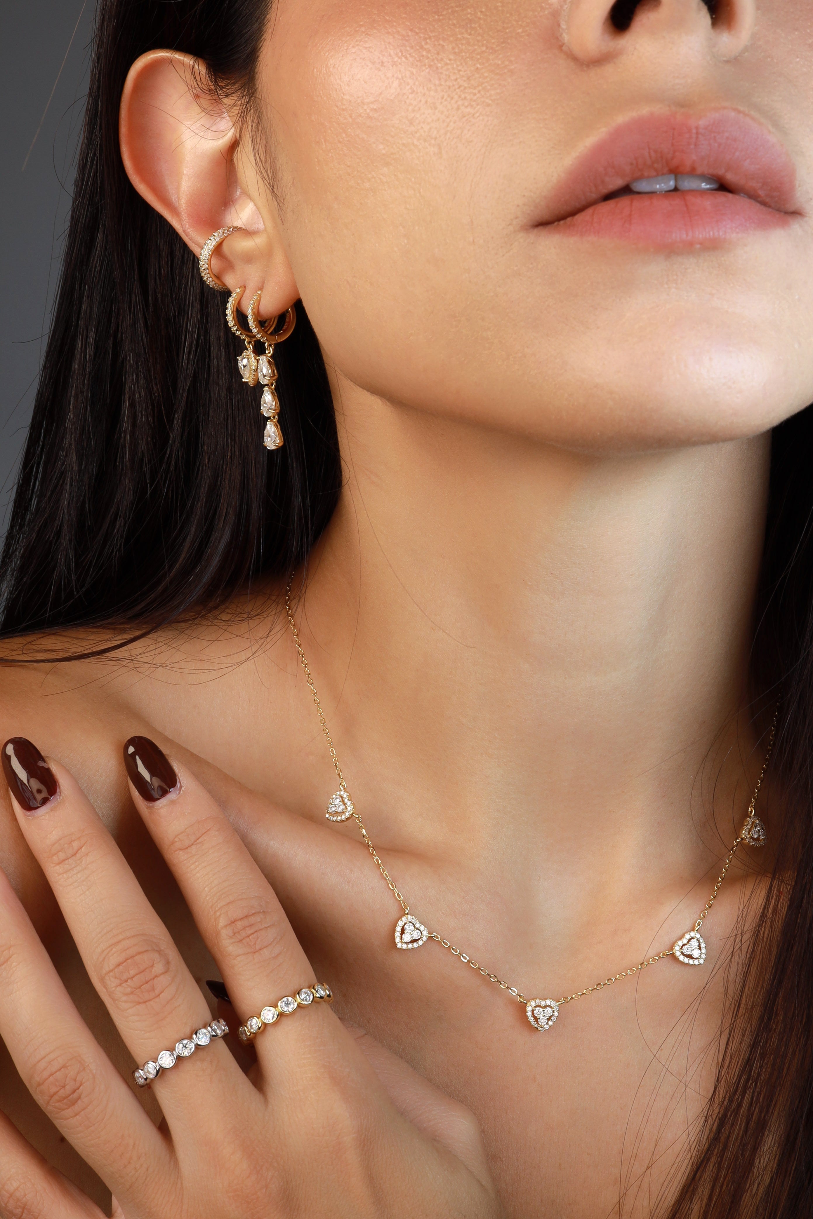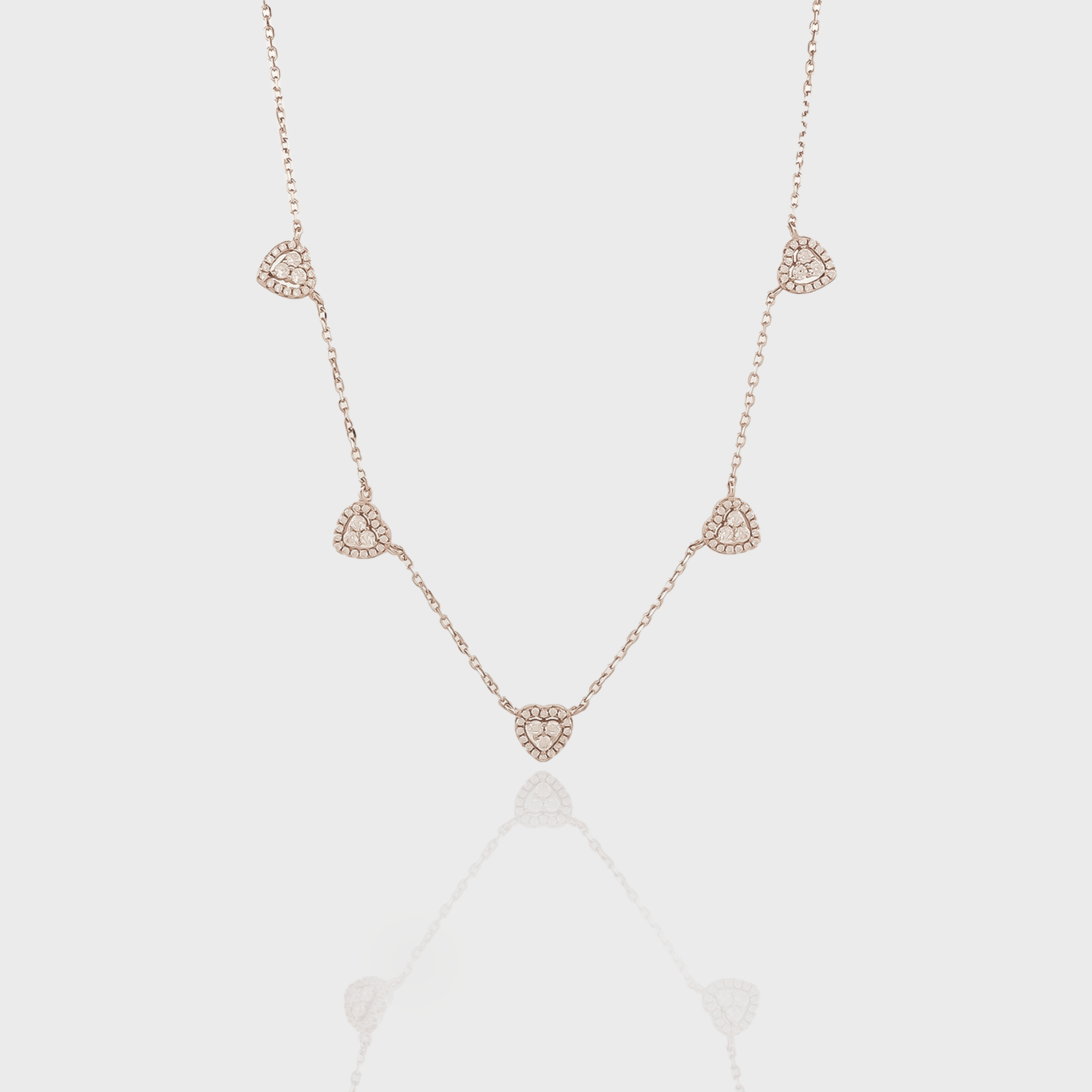 Eleve sua elegância com The Lovely Necklace. Esta peça deslumbrante apresenta uma série de detalhes em forma de coração, lindamente adornados para adicionar um toque de romance a qualquer look.