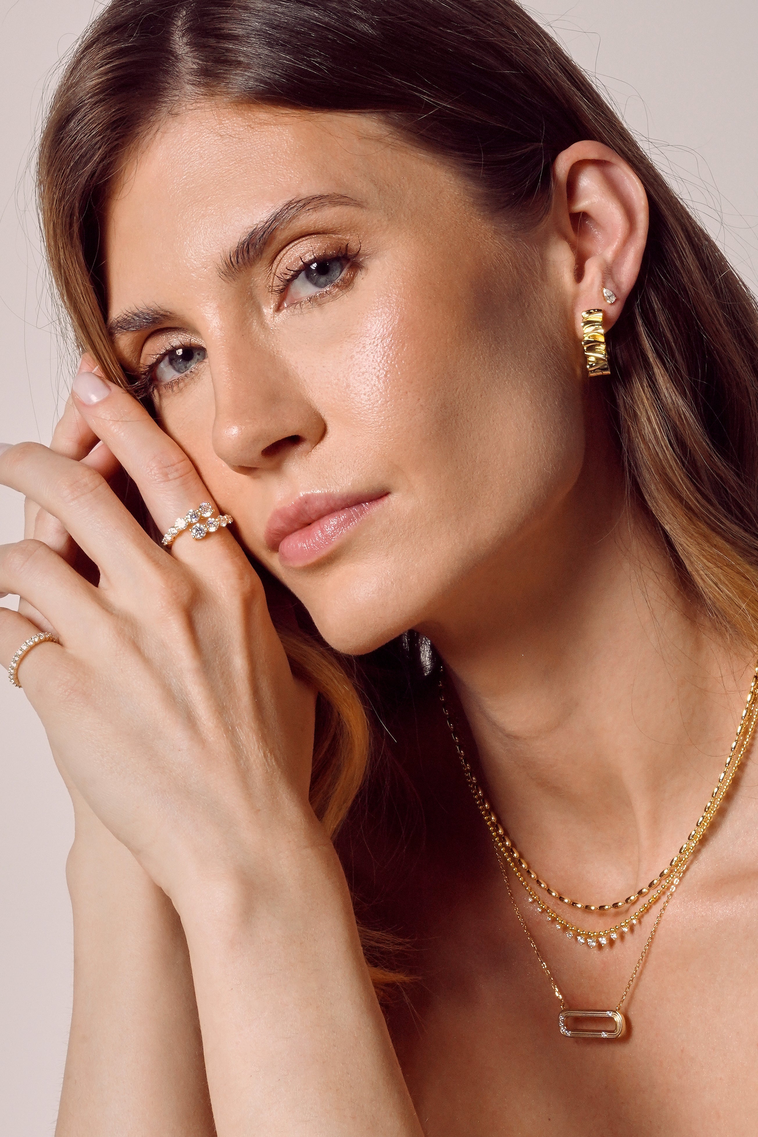 Radiante, feminino e criado para brilhar sob todos os ângulos — o Anel Glamour Moissanite é o novo essencial de impacto. Com duas fileiras de moissanites perfeitamente lapidadas, sua silhueta em estilo wrap cria a ilusão de luz em cascata ao redor do dedo. Chic e atemporal, ele eleva tanto produções minimalistas quanto looks mais elaborados com um brilho natural e sofisticado.