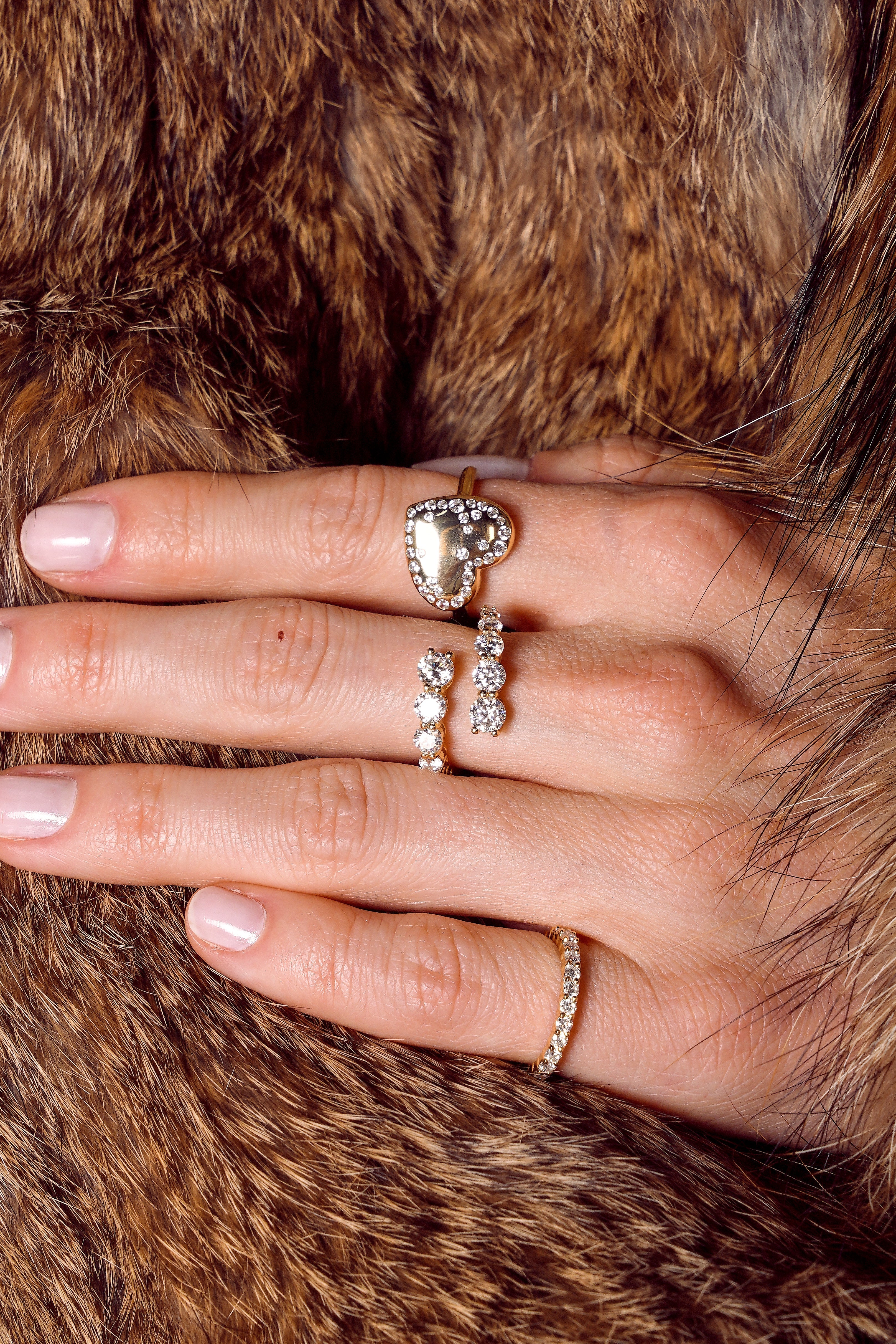 Design: Anel de duas fileiras em estilo wrap, com moissanites redondas perfeitamente lapidadas