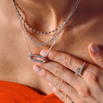 Minimalista e marcante, o Colar Mirage Moissanite eleva qualquer decote — onde o design contemporâneo encontra o luxo sem esforço.