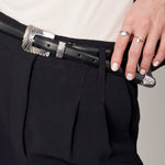 Apresentamos o Cinto The Texas, uma peça marcante da coleção Fine Leather, meticulosamente confeccionada à mão na Itália por mestres artesãos. Produzido em couro de bezerro toscano macio e finalizado com metais trabalhados em estilo western, este cinto combina elegância e personalidade.