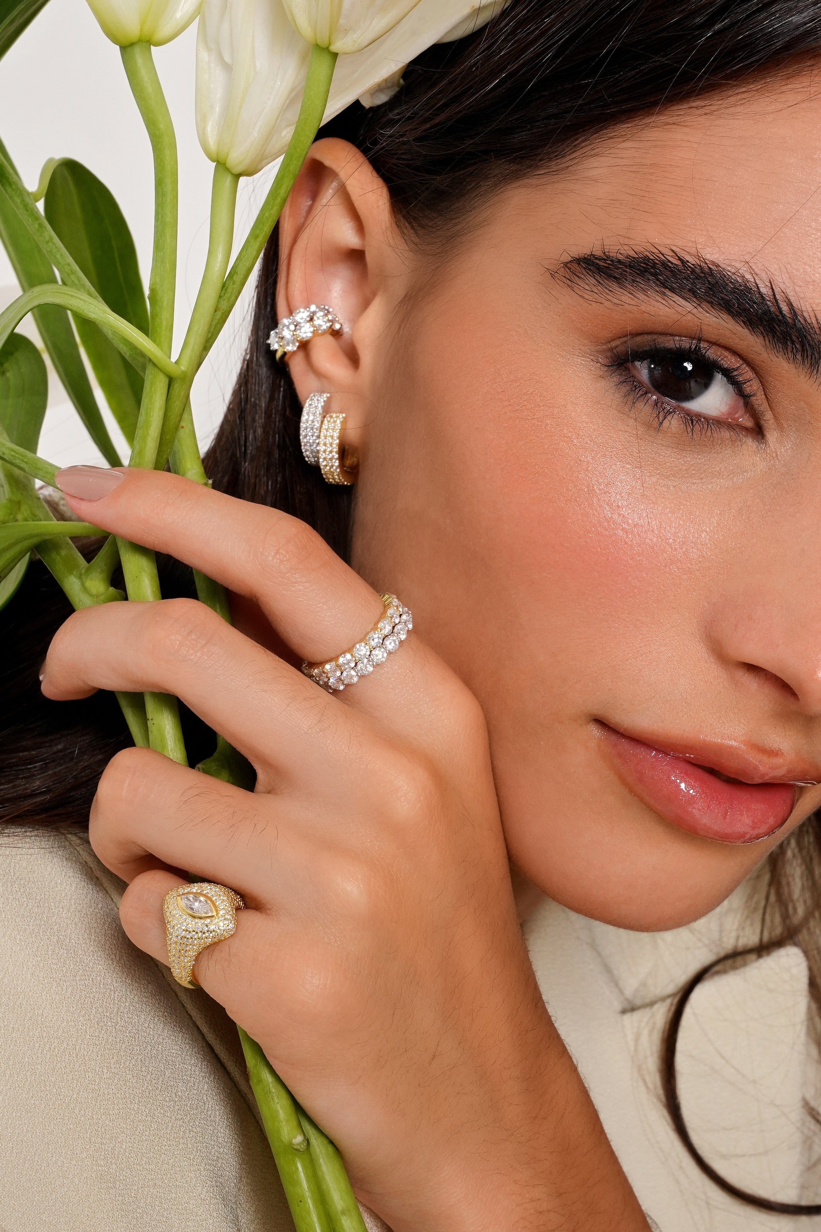 Fabricado em prata 925 de alta qualidade, com sua escolha de revestimento luxuoso em ouro ou ródio para um brilho duradouro. A Prata 925 é um metal leve composto por 92,5% de prata pura. É altamente durável e produzido para uso diário.