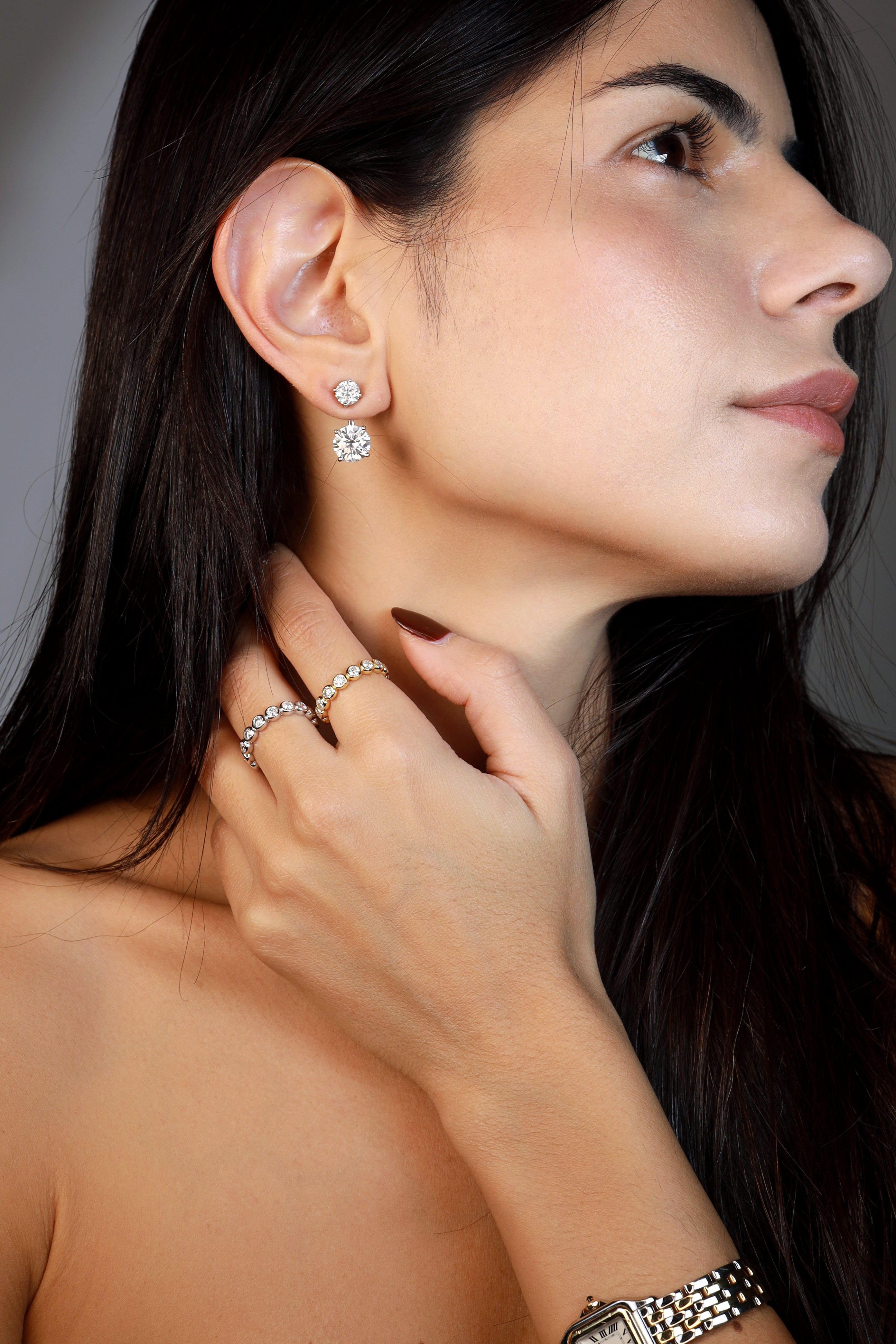 Da beleza à durabilidade, o moissanite se compara facilmente aos diamantes, se não os supera. É também uma pedra preciosa verdadeiramente sustentável. Você não precisa se preocupar com a responsabilidade social da extração ou com os terríveis impactos ambientais da mineração. Apesar de todas essas qualidades, o moissanite ainda é significativamente mais barato do que os diamantes, agregando um alto valor às nossas joias por uma fração do custo.