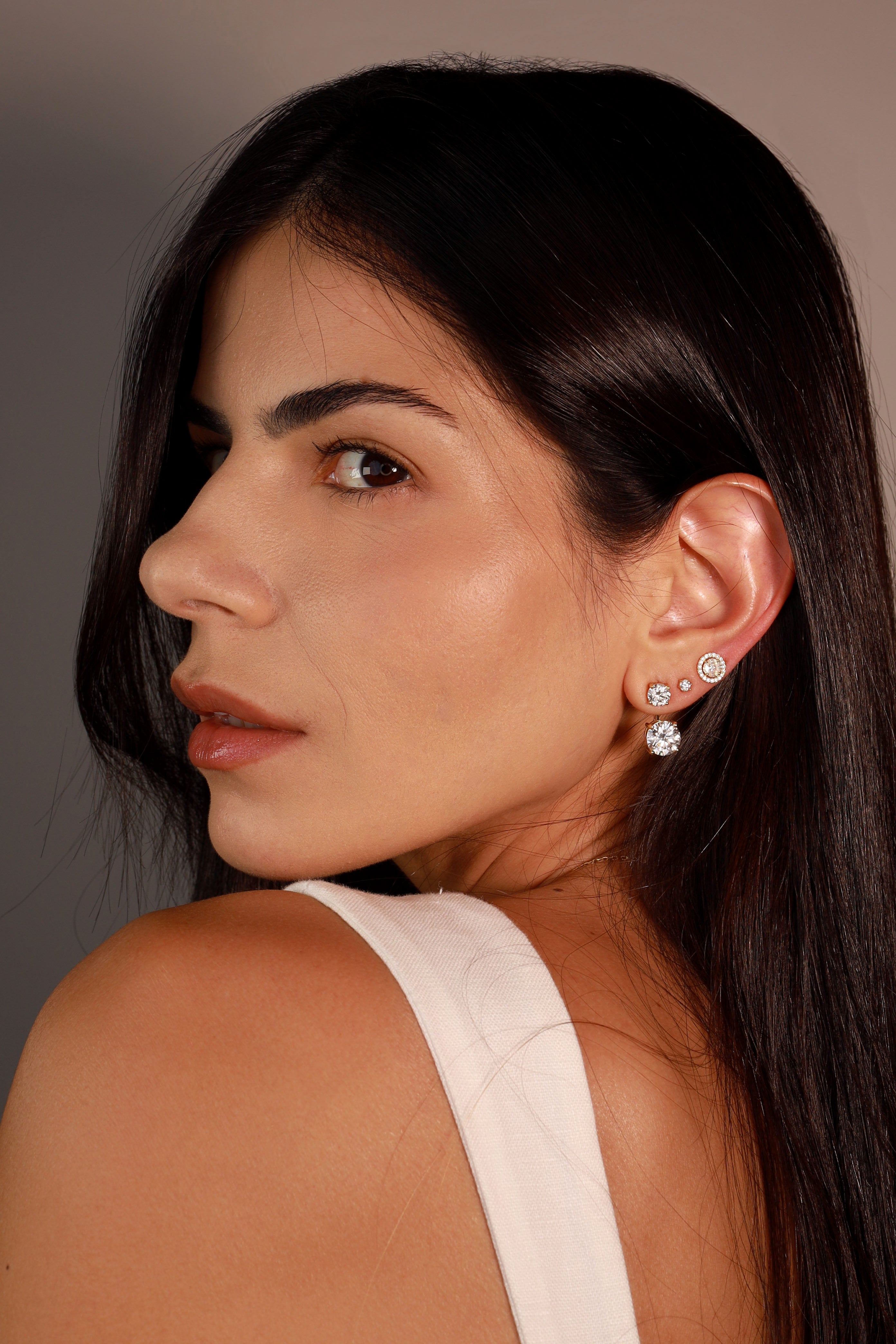 • Tamanho: Pedras Moissanite de 6mm e de 9mm. Dimensões totais elegantes de 9 mm x 23 mm para uma aparência marcante e graciosa