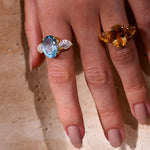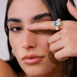 Topázio Azul e Moissanite - Usamos uma seleção de pedras preciosas de alta qualidade, escolhidas por sua beleza e durabilidade.