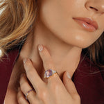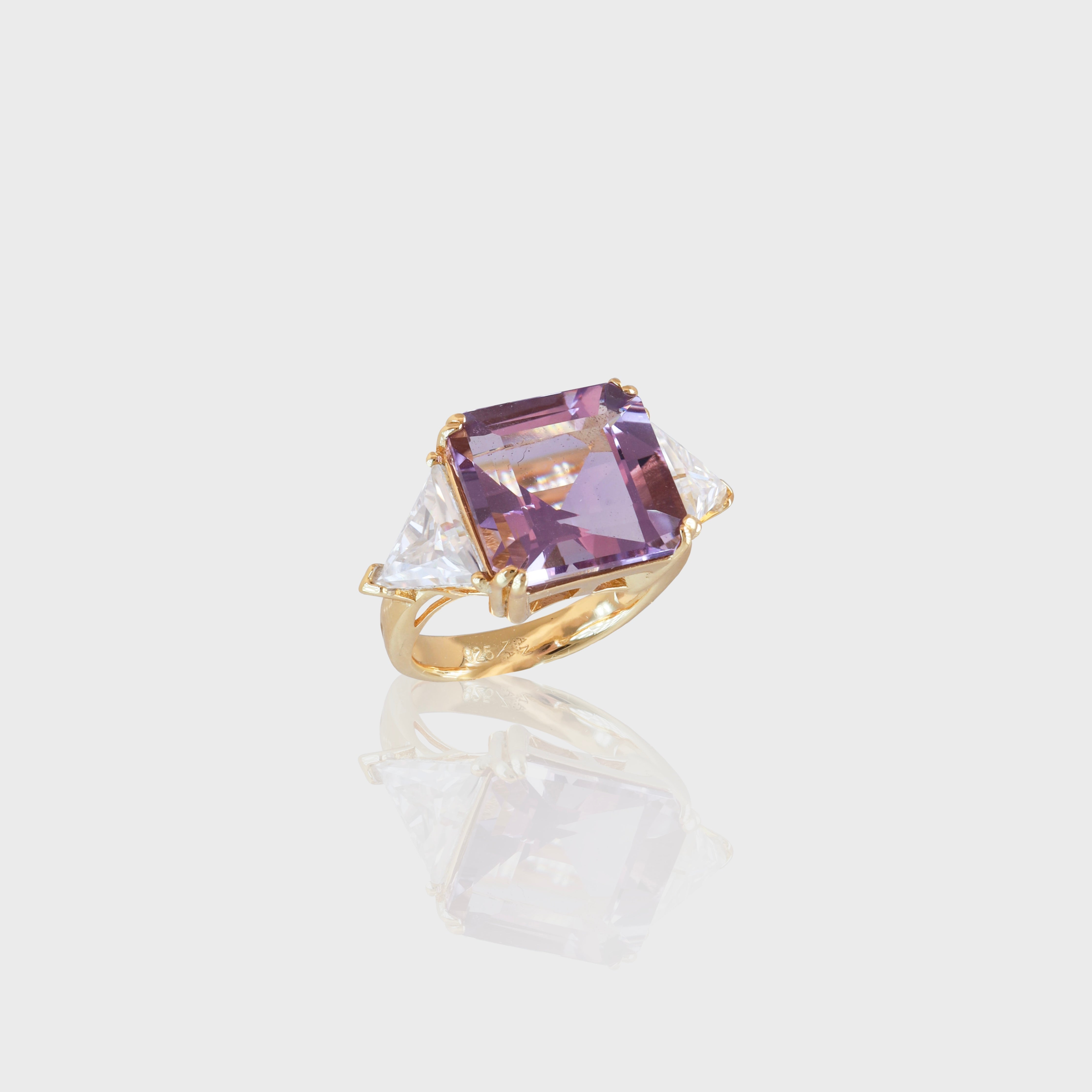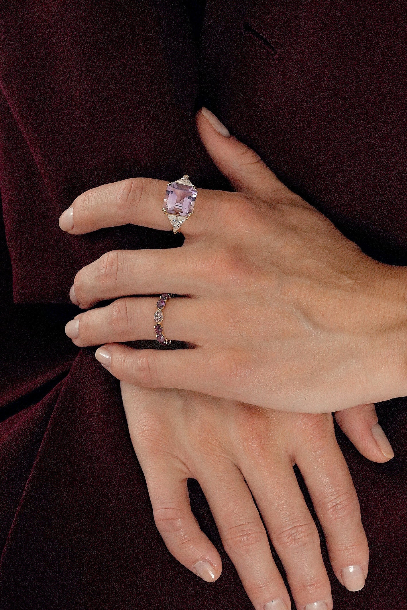 Pedras: Ametista e Moissanita - Utilizamos uma gama de pedras preciosas de alta qualidade, selecionadas por sua beleza e durabilidade.