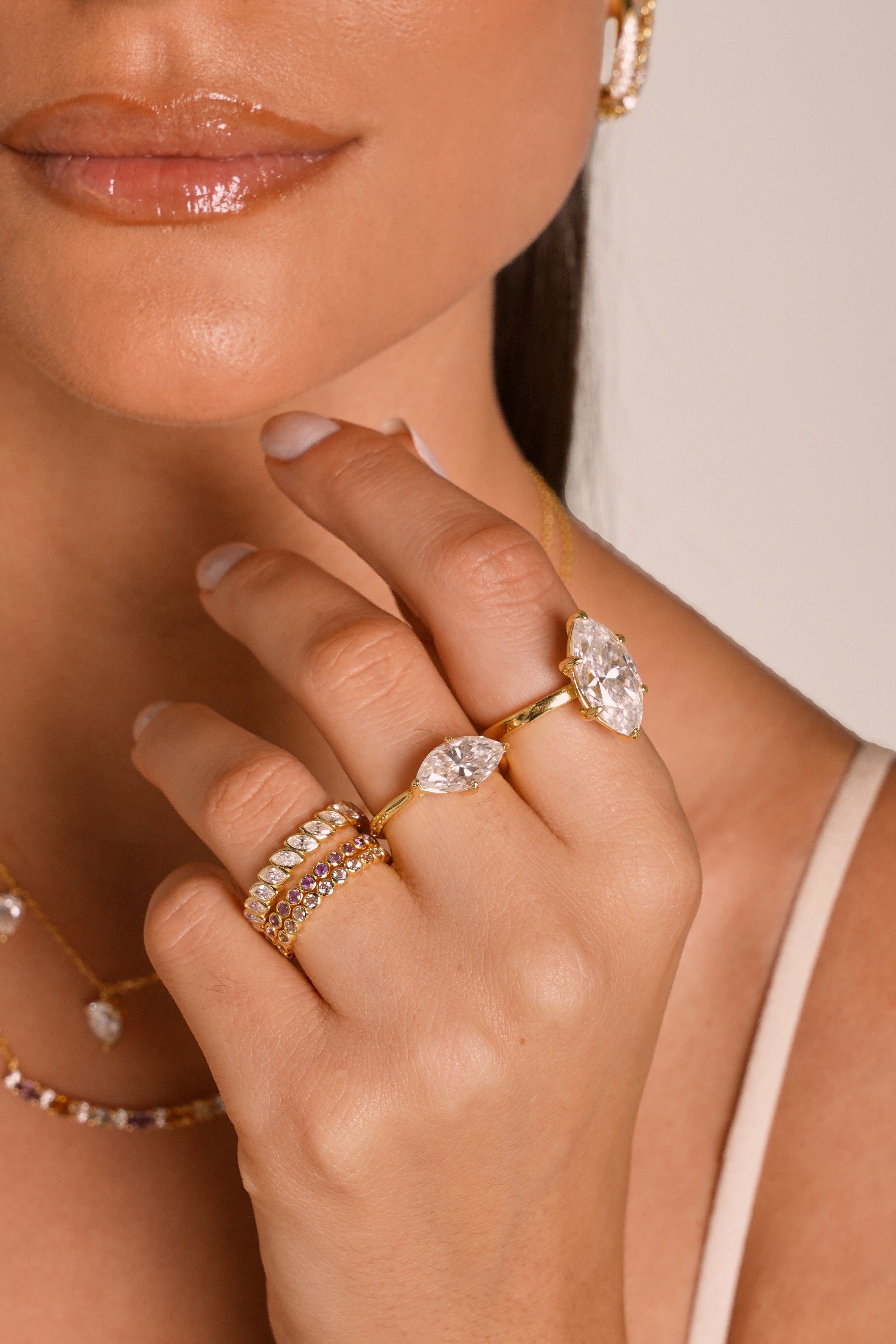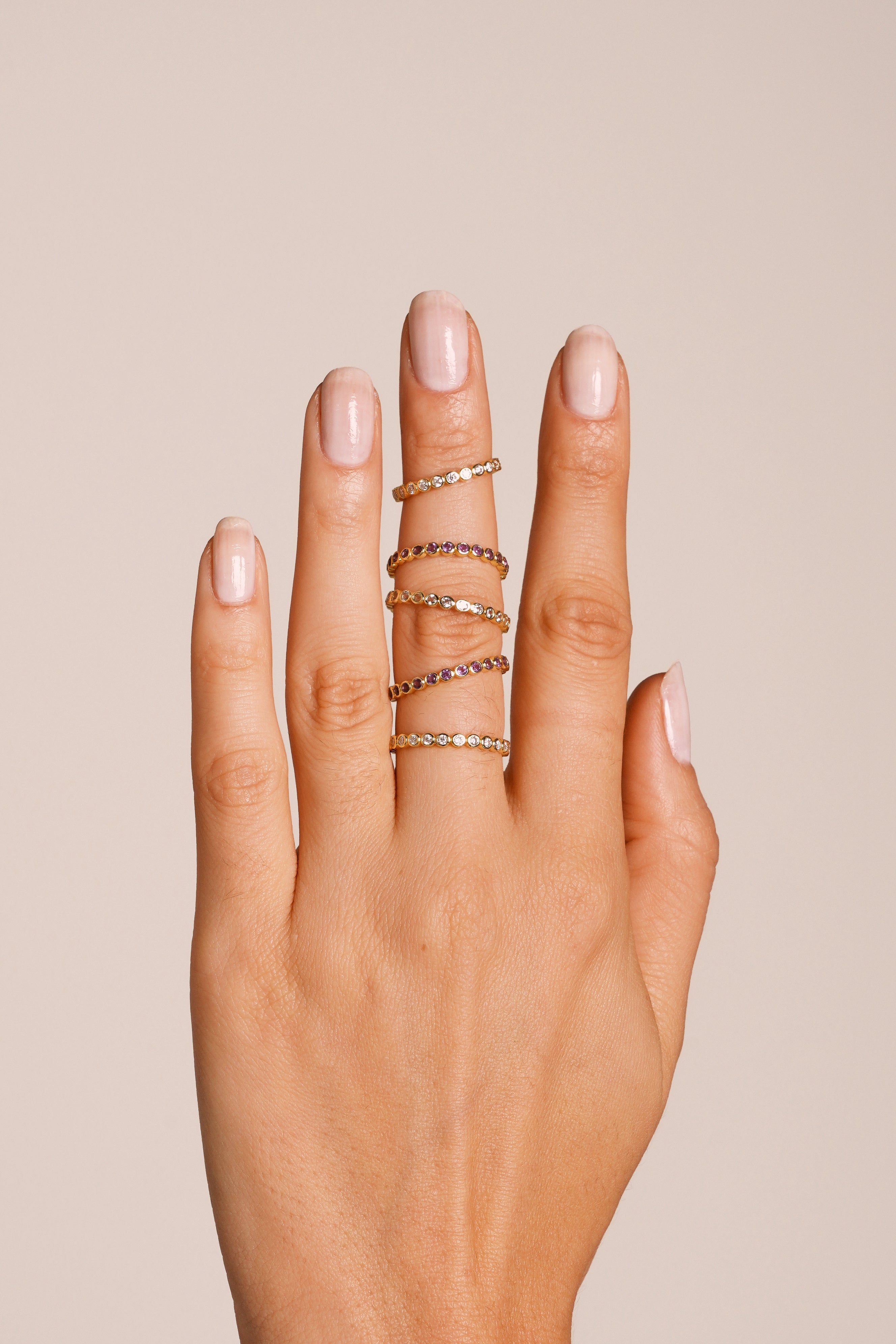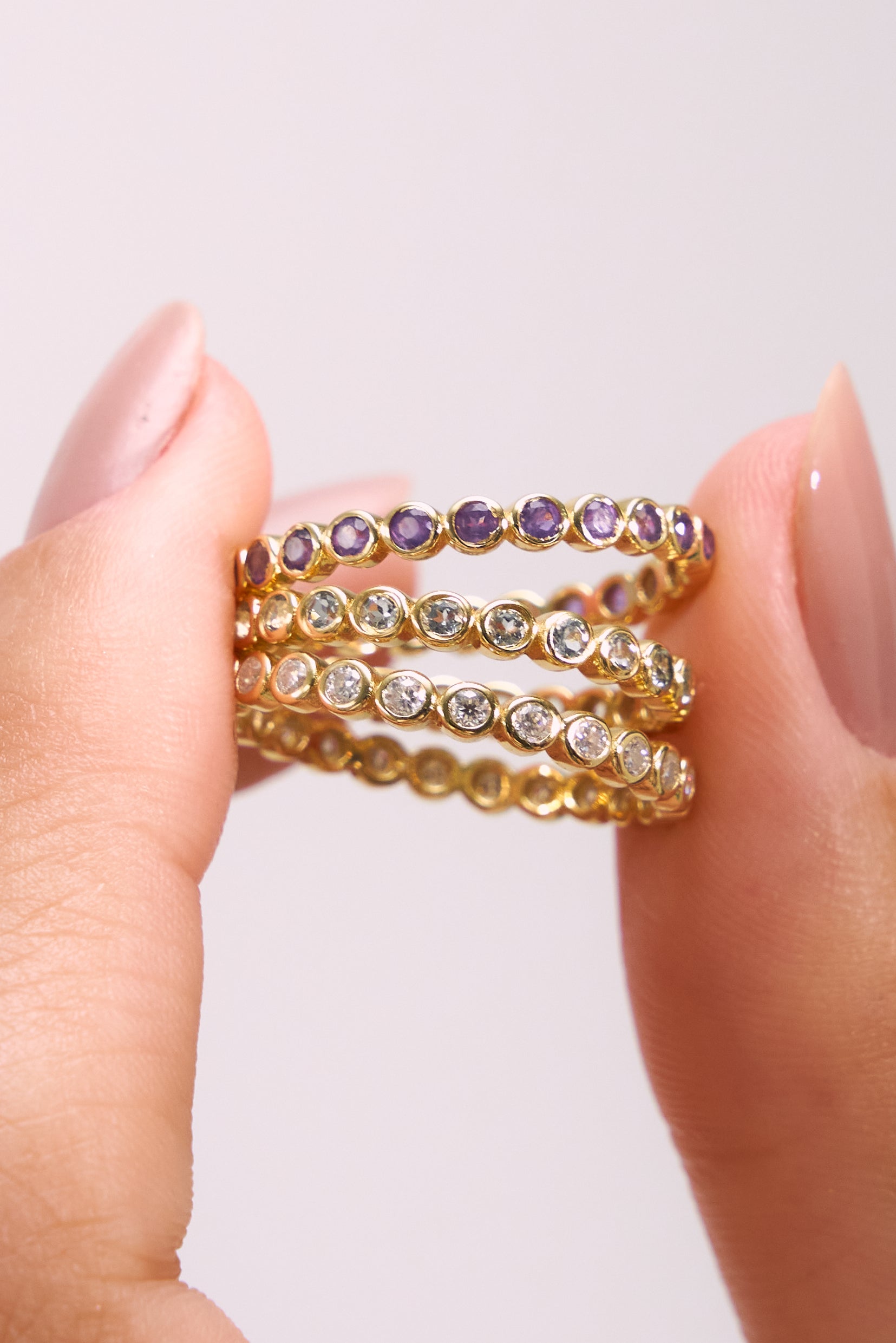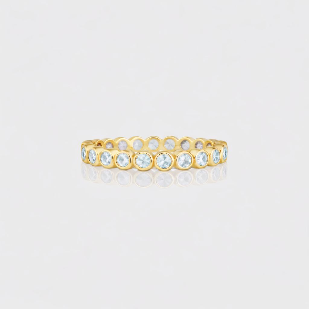 • Design: Silhueta slim estilo eternity completa, criando uma linha contínua de brilho — ideal para composições ou como destaque delicado.