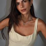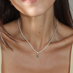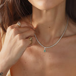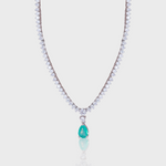 Uma ousada releitura da elegância clássica, o Colar Monaco combina o brilho das pedras em corte gota com um pendente de esmeralda fusion em corte gota, criando um statement moderno digno da Riviera Francesa.